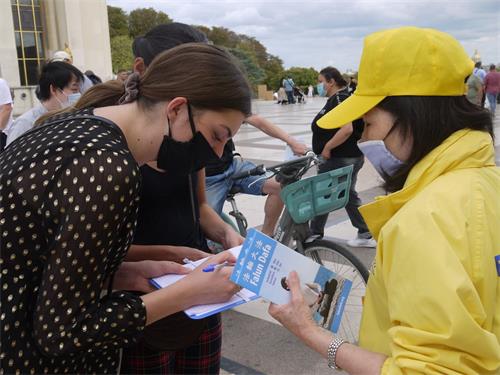 ![]() 图1~4:游人在征签表上签字,希望尽早结束迫害。 |