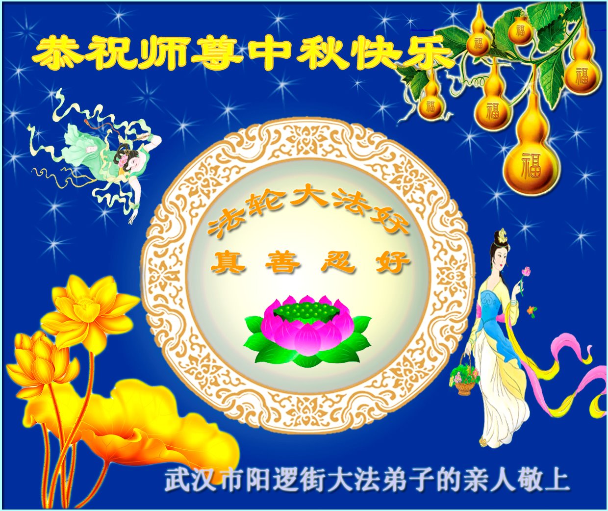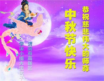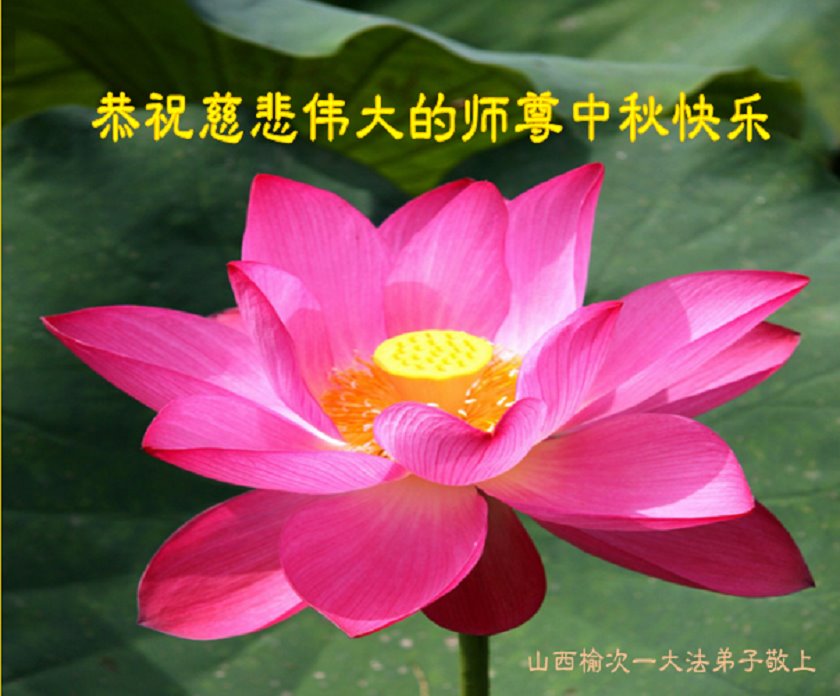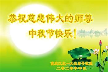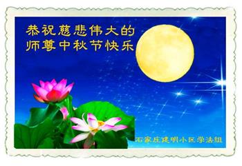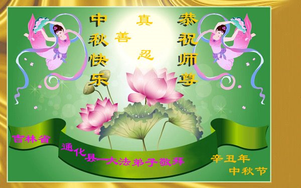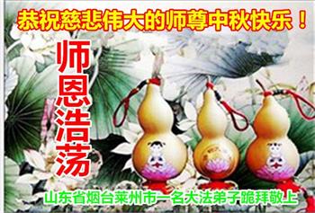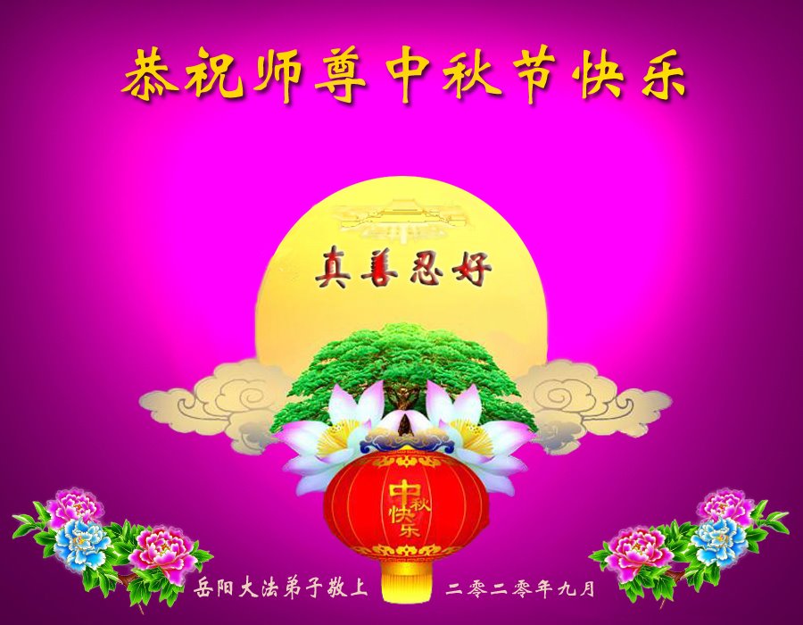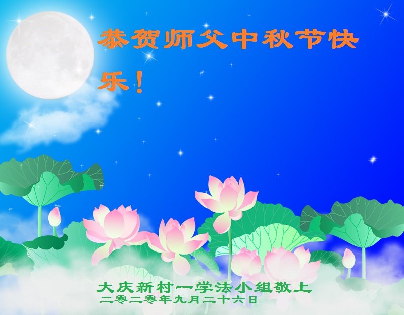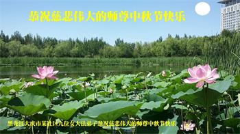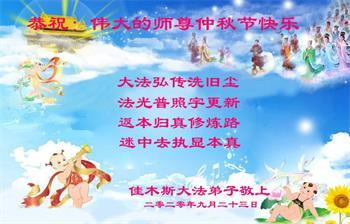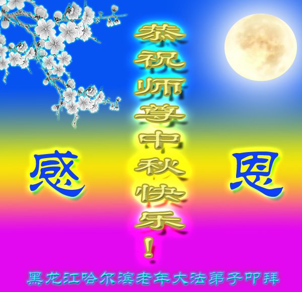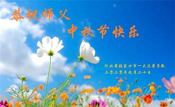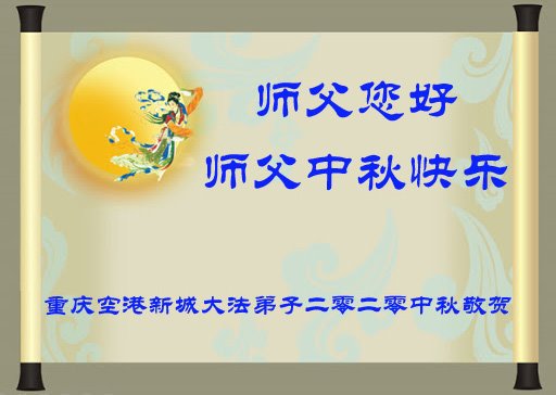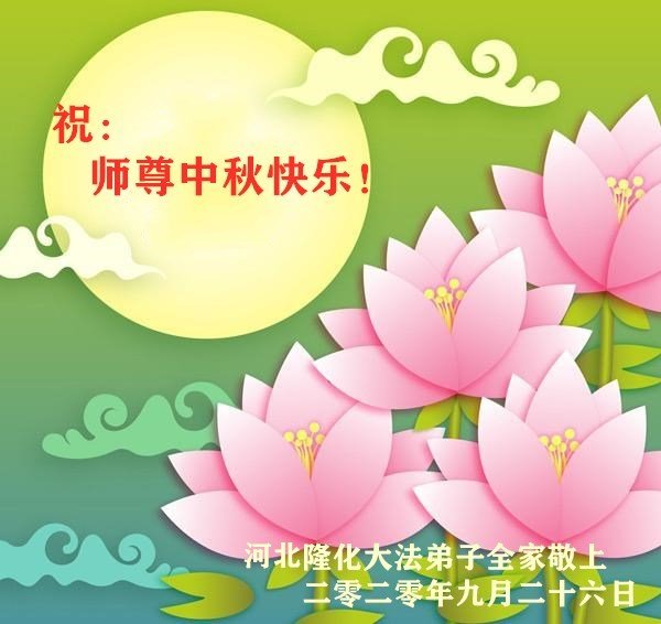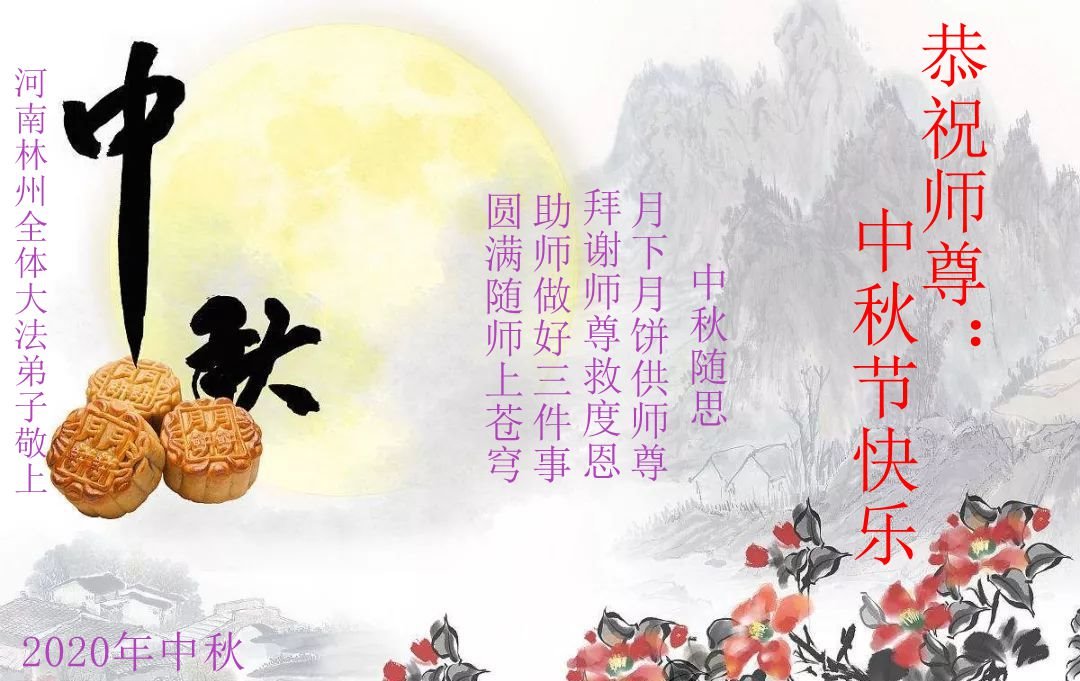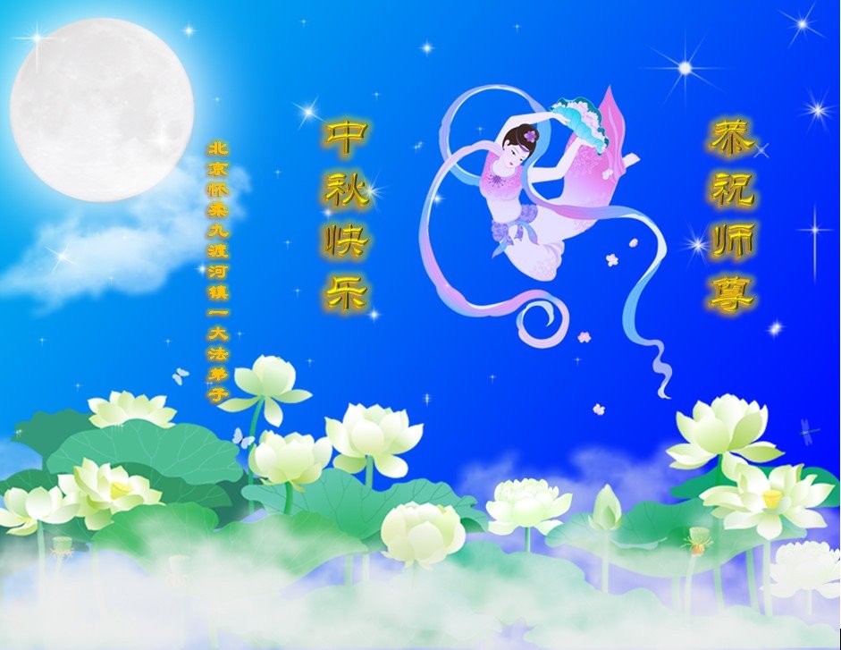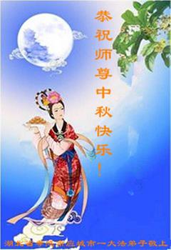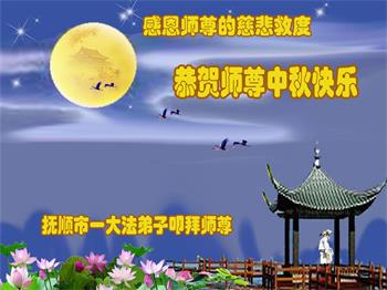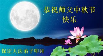 中国民众在贺词中写道:在中秋节来临之际,感恩大法师父的慈悲保护!我们盼望您早日回归中土,恩泽百姓,让亿万个家庭解开中共的枷锁,让中华民族五千年的文明在中原再现。