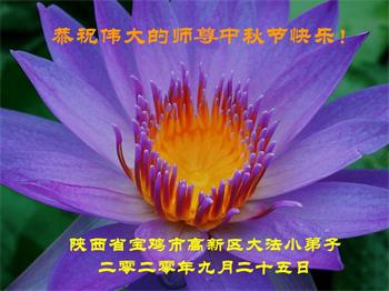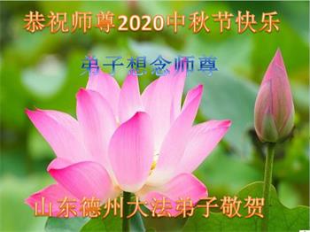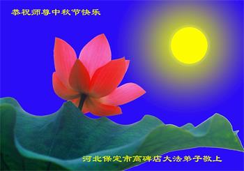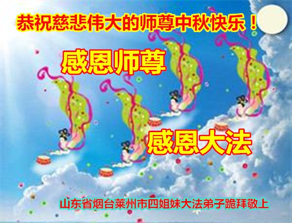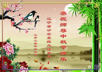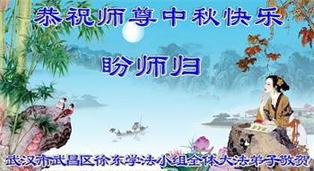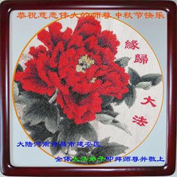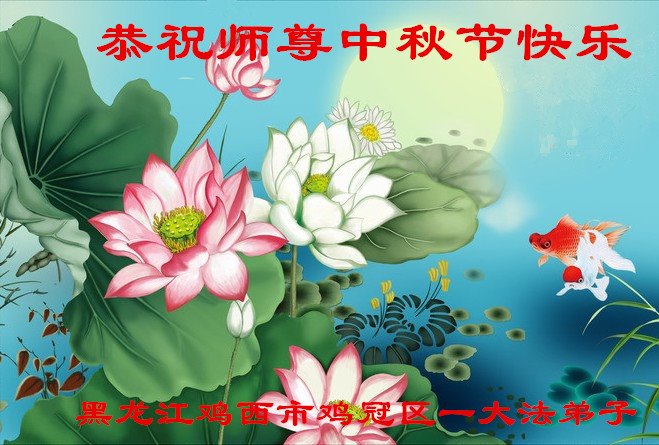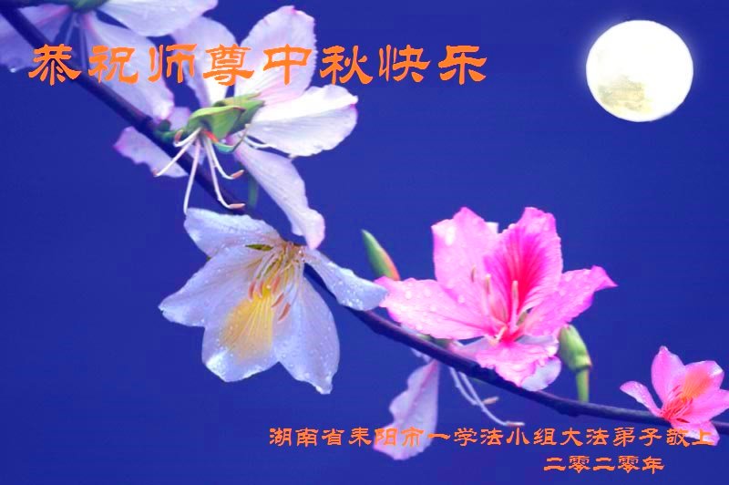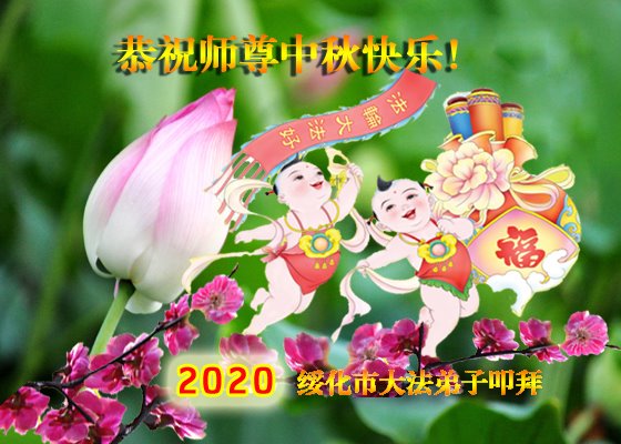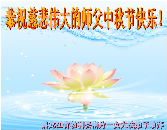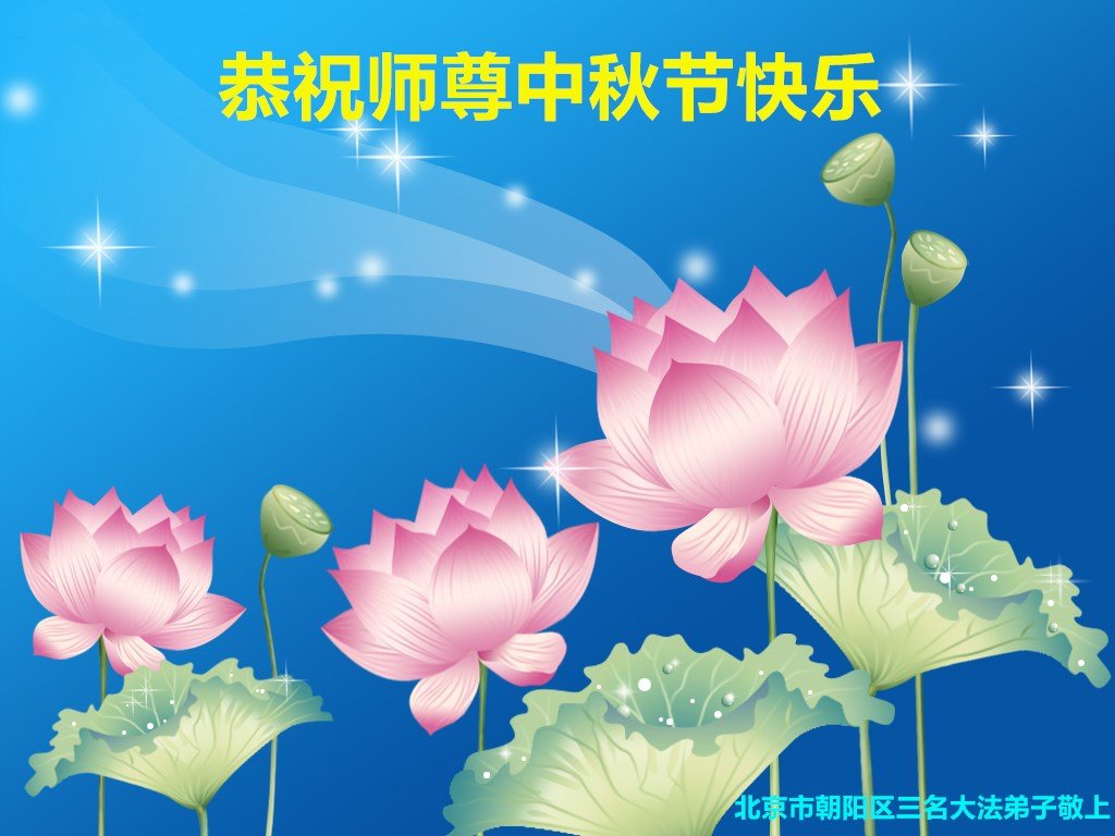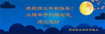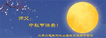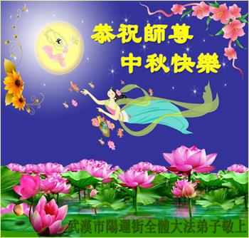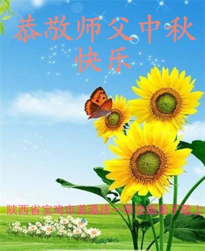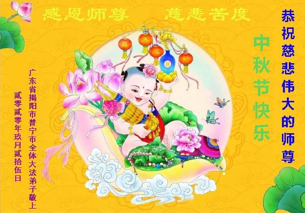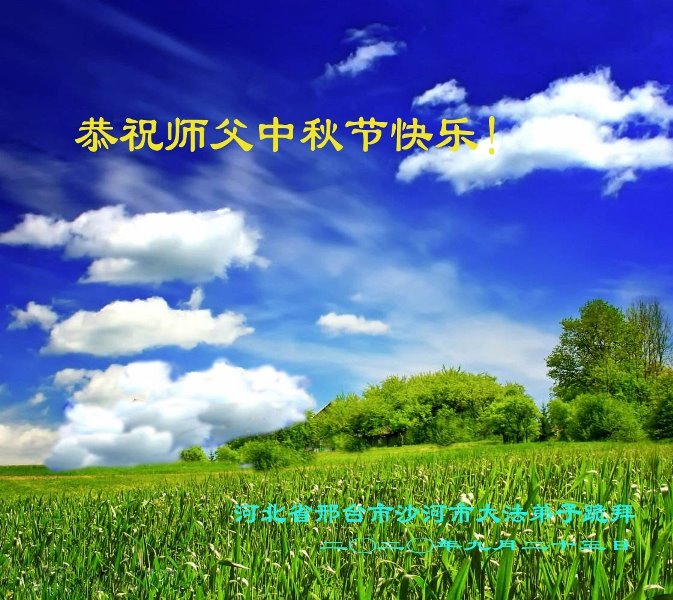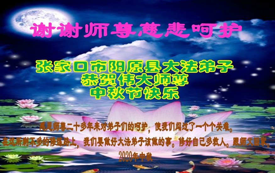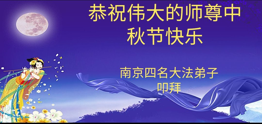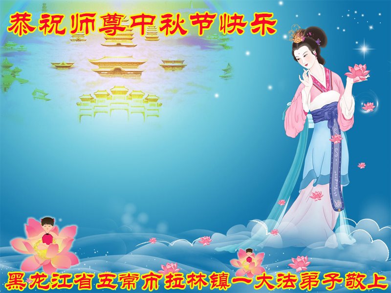 中国民众在贺词中写道:在中秋节来临之际,感恩大法师父的慈悲保护!我们盼望您早日回归中土,恩泽百姓,让亿万个家庭解开中共的枷锁,让中华民族五千年的文明在中原再现。