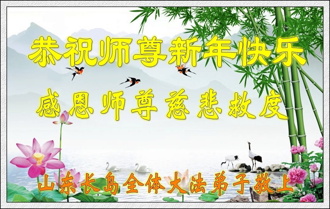 我们全家老少四世同堂二十几人,向慈悲伟大的李洪志大师献上最诚挚的新年祝福和感恩:恭祝大师新年快乐!万事如意!全家幸福!感谢大师佛恩浩荡救度无量众生!更使我们全家身心受益得福报。
