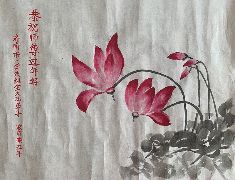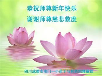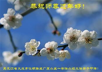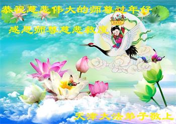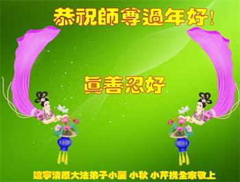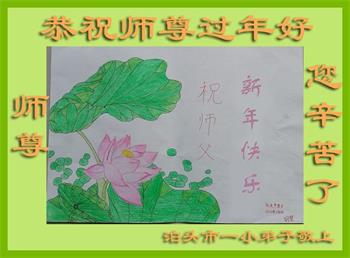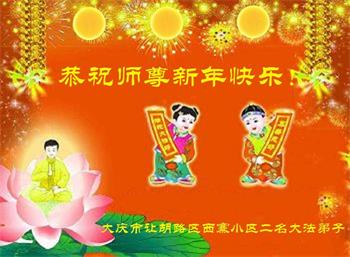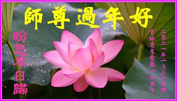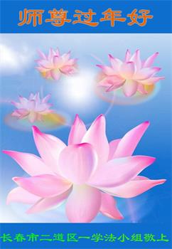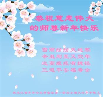 黑龙江省哈尔滨市一家人恭祝大师新年快乐!他们说:“在这中共病毒瘟疫肆虐、多灾多难的时候,我们不会惧怕,我们相信在大师的慈悲保护下,心怀善念,常颂‘法轮大法好,真善忍好!’这避瘟良方定会使全家平安健康,渡过劫难。”