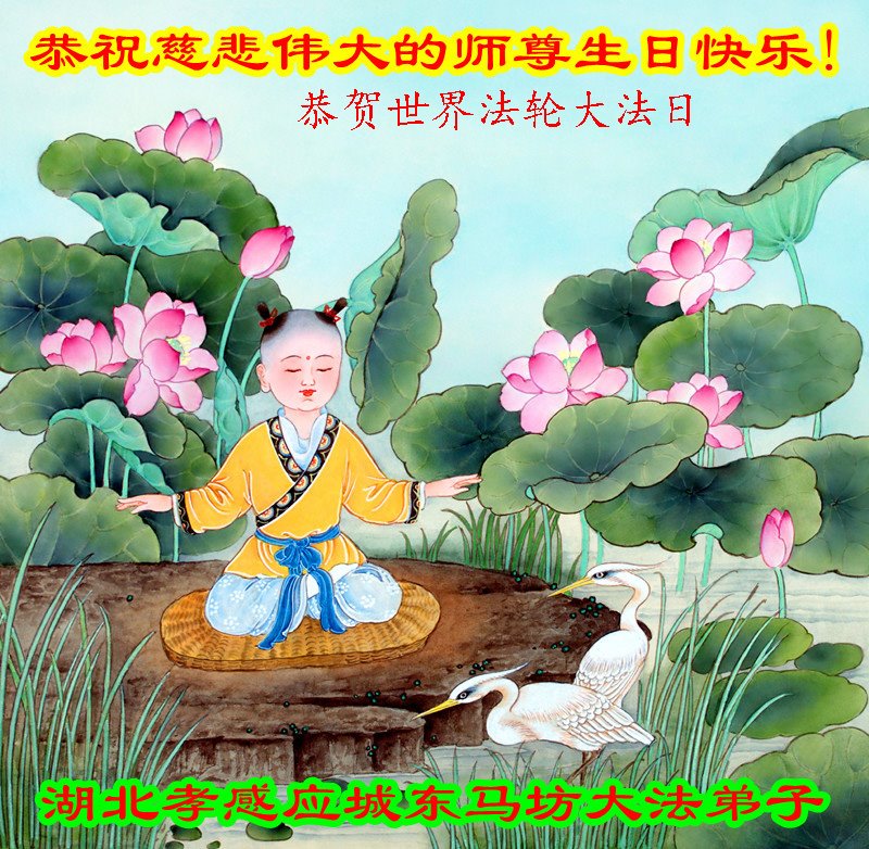 在师尊华诞暨世界法轮大法日来临之际,中国大陆一新学员及家人同修恭祝慈悲伟大的师尊生日快乐!谢谢师尊的慈悲苦度!