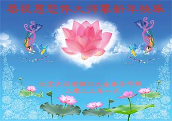 河北省保定市一个不修炼的常人祝李大师新年快乐!我已经八十多岁了,在这么多年里我看到了我修炼的儿媳的变化,知道法轮大法是好的,我每天都在念“法轮大法好”,再一次祝李大师新年快乐!
