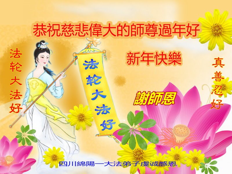给大法师父拜年啦!感恩大法师父这些年对我的保护,使我身体健康,事事顺利、幸福满满。在这新年来临之际,恭祝大法师父新年快乐!