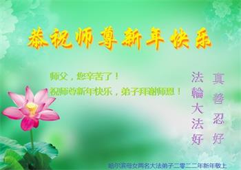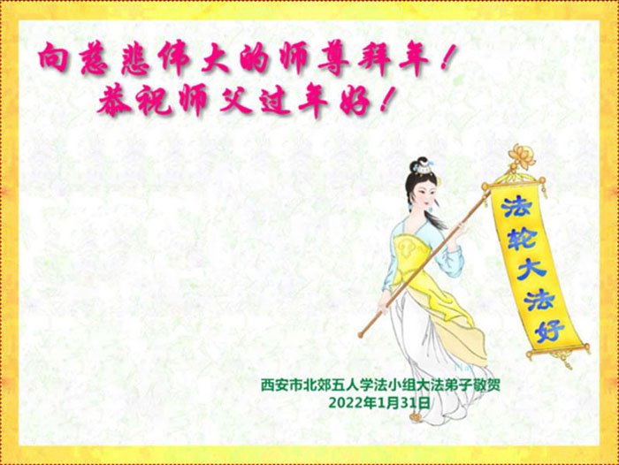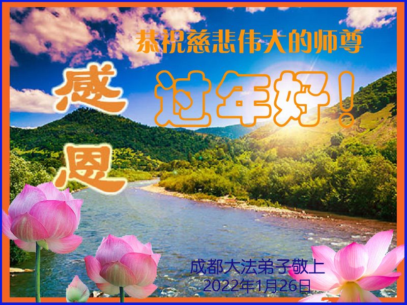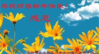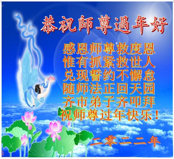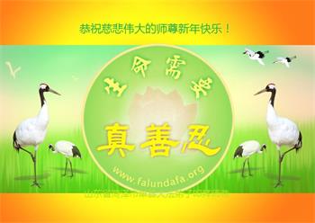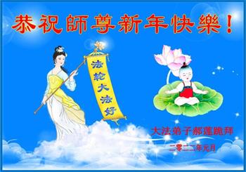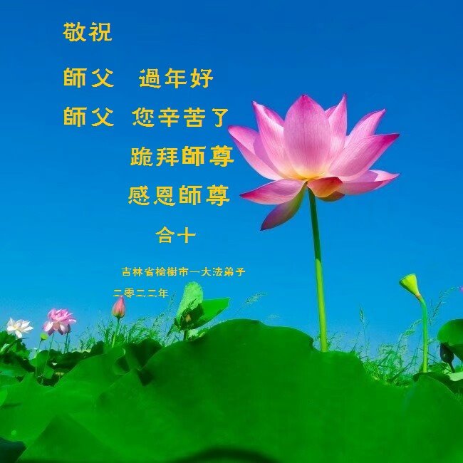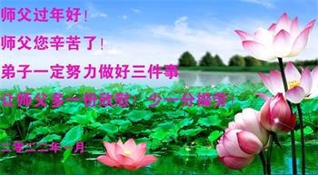师父好!我们老俩口都是九十多岁的人了,通过看法轮大法资料,我们明白法轮功受的冤屈,也知道了大法的美好。平日里我们诚心诵念“法轮大法好,真善忍好”,我们亲身感受到了,体验到了,大法师父的佑护。我们衷心感谢师父,感谢大法,新年来了,我们衷心恭祝师父节日快乐!