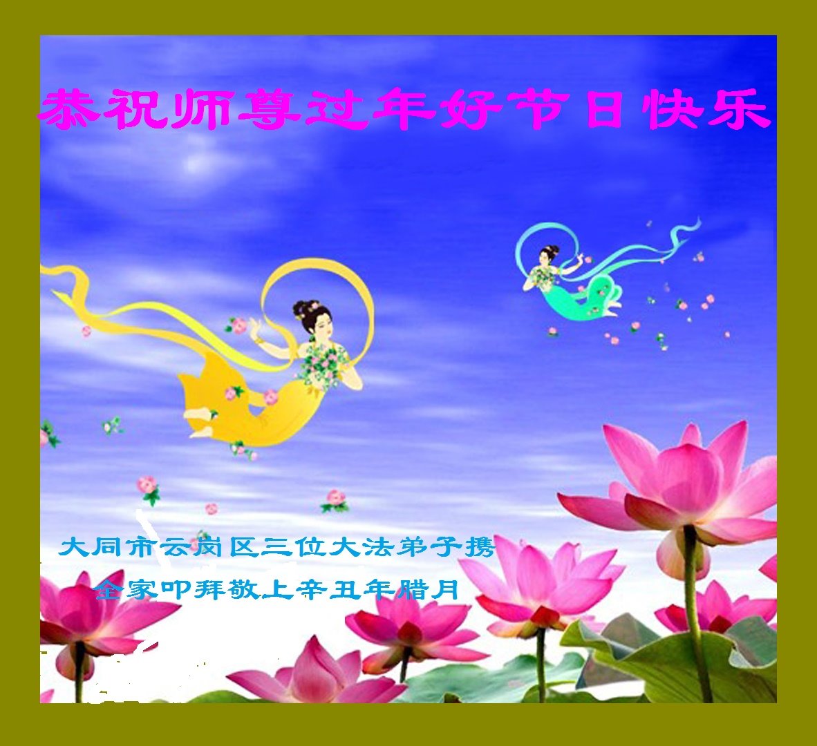 在这些年我们全家人相信法轮大法好,支持大法弟子。在您慈悲的保护下,我们全家人身体健康,事事顺利、幸福满满。在这新年来临之际,给大法师父拜年啦!感恩大法师父!恭祝大法师父新年快乐!谢谢您的洪大慈悲!