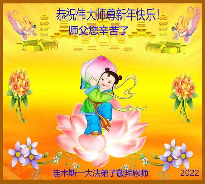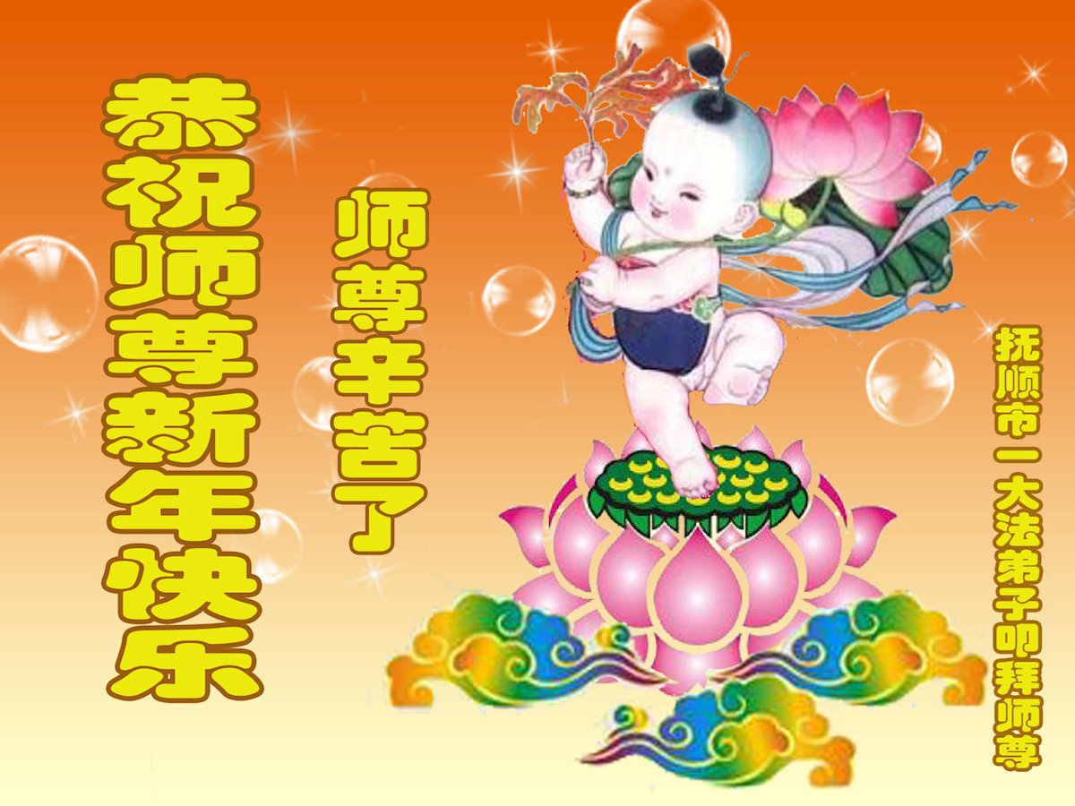 在您的慈悲保护下,我们又顺利的度过了不平凡的一年。师父为弟子的巨大承受和付出,我们无法得知,也无法回报,只能在心里牢记师恩。在新的一年里,弟子会一直坚定不移的跟随师父指引的正法之路前進不停,用心学好法,实修好自己,抓紧时间救人,回报师父的救度之恩。师父,弟子想念您。恭祝师父新年快乐!叩拜伟大的师父!