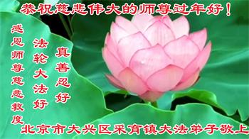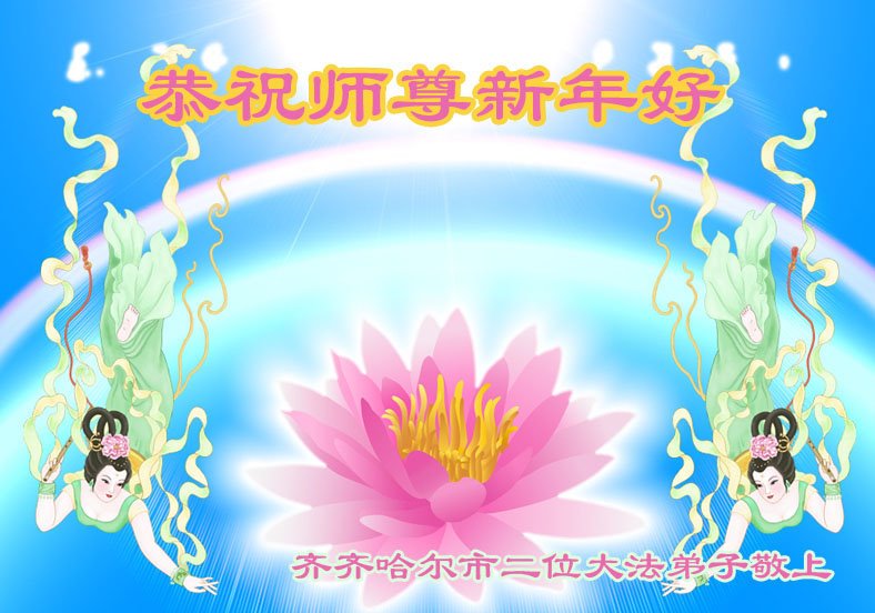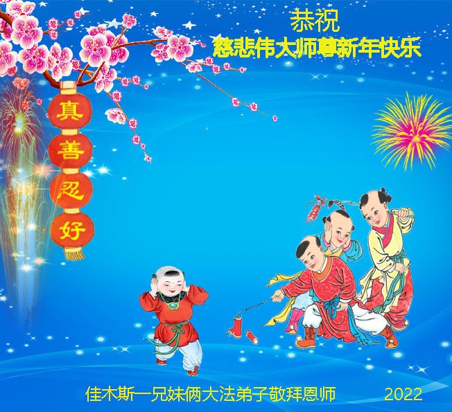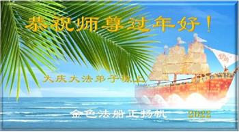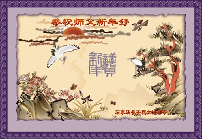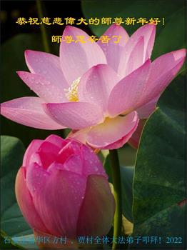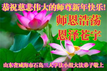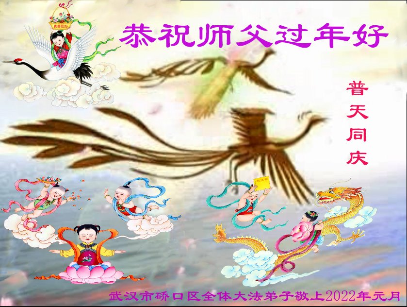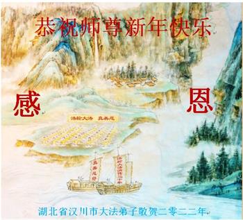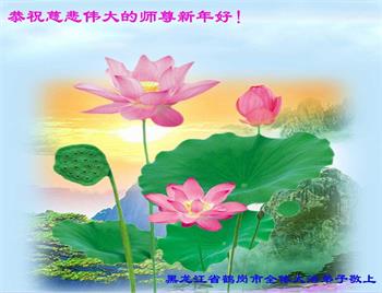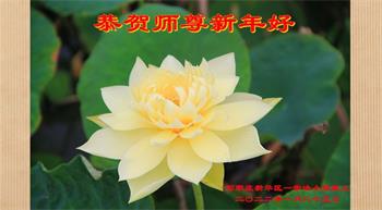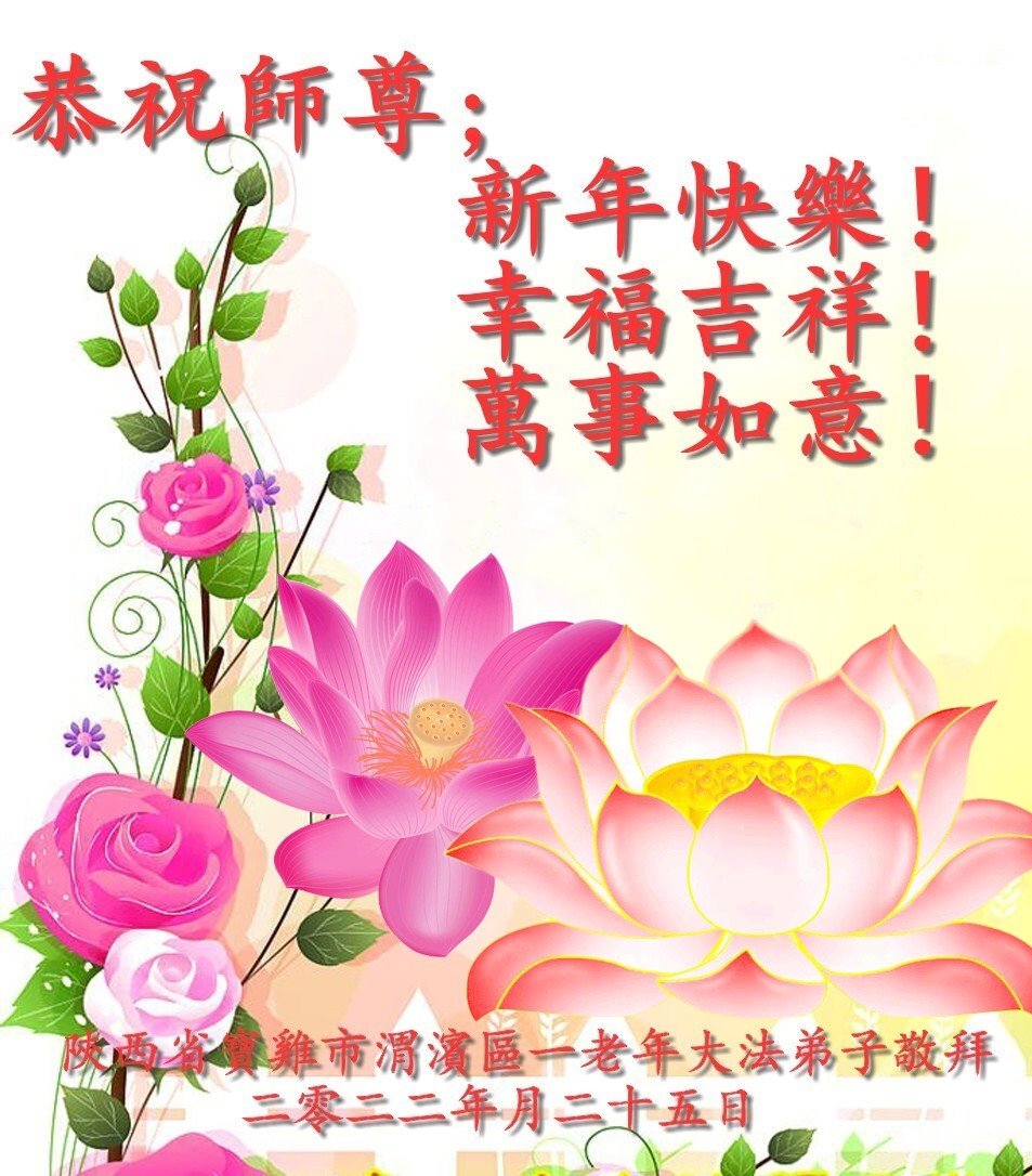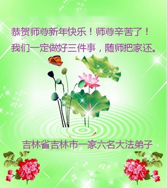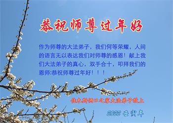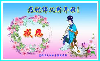 在师尊您的加持和保护下,又進入了新的一年。新的一年里,我们一定会按照师尊您的教诲,做好三件事,学好法,修好自己、多救人。紧跟师尊的正法進程,圆满随师还。