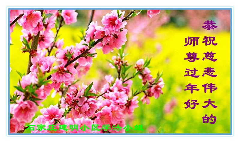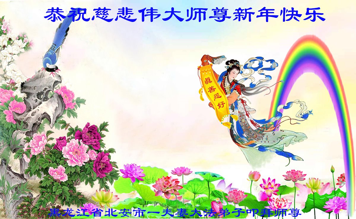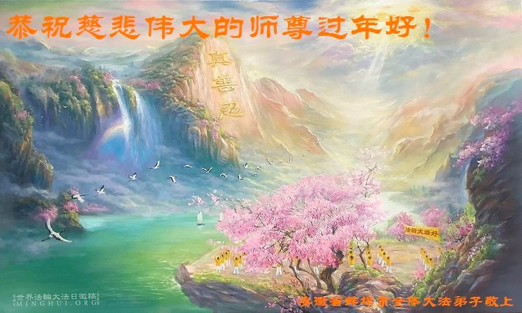 在新春佳节到来之际,弟子怀着无限感恩的心,恭祝慈悲伟大的师尊新年快乐!师尊您辛苦了!您为无量众生付出了无尽的辛苦,您无尽的慈悲驱散了阴霾,照亮了寰宇,在劫难中得救的众生对师尊只有无尽的感恩!无尽的感恩!