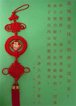 弟子遵循师父的教诲:多学法,学好法,集中念力发正念,讲清真相多救人。让师父放心,让师父欣慰!弟子再次恭祝师父过年快乐!