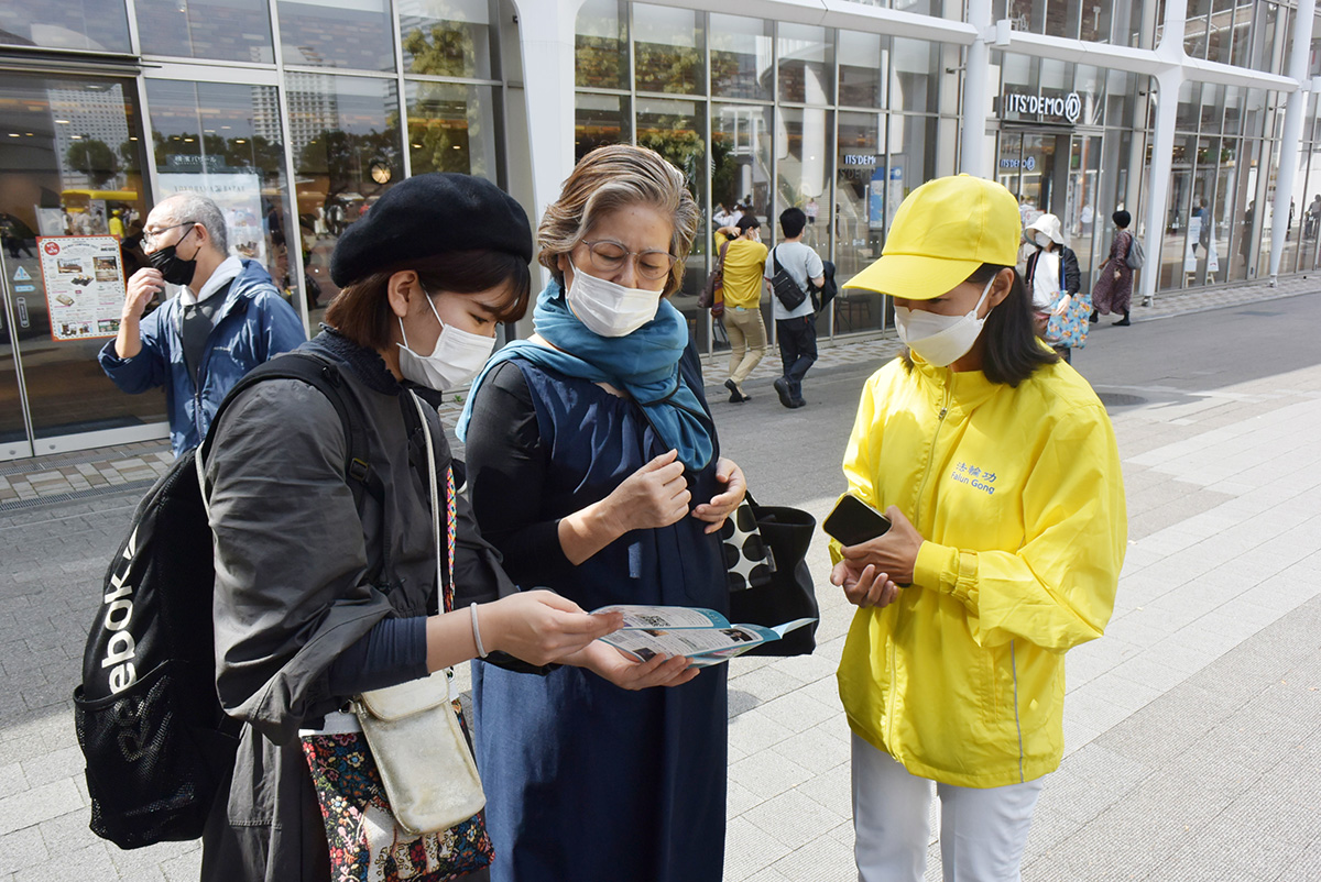 从鹿儿岛县和孙女一起来横滨的山下女士,听完法轮功被迫害的真相后说:“完全不知道法轮功正在经受着这样的迫害,回去后我会好好了解。能在这里听到也许是一种缘份。”