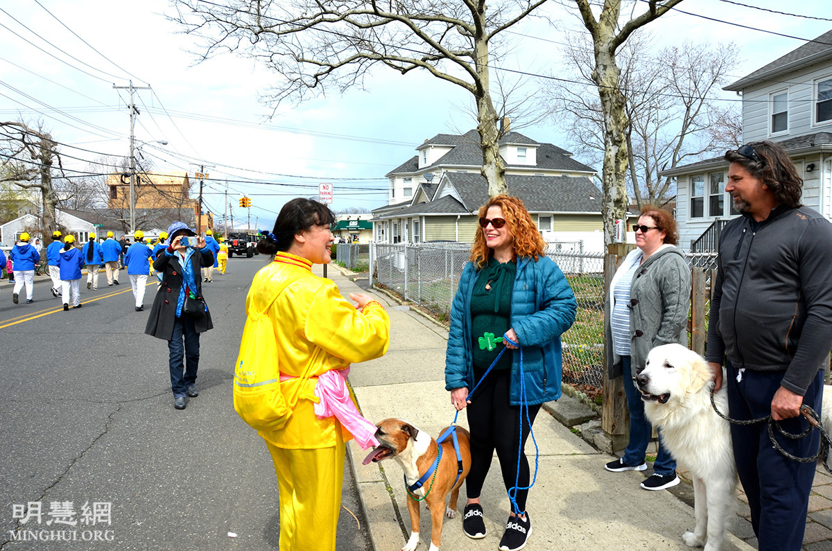 【明慧网二零二二年三月三十日】二零二二年三月二十六日,美国新泽西州海滨小城肯斯堡(Keansburgh)举行了年度圣派翠克节(St. Patrick’s Day)游行。在这个爱尔兰的传统节日,法轮功学员的游行队伍受到肯斯堡市长和民众的热情称赞。