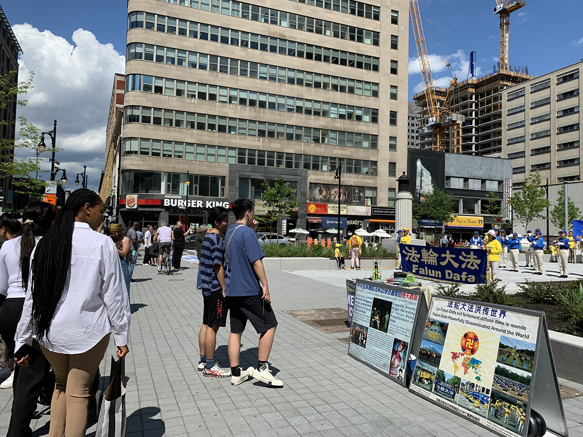 【明慧网二零二二年六月十四日】二零二二年六月十一日,加拿大蒙特利尔部分法轮功学员在市中心菲利浦广场,以集体炼功、天国乐团演奏、征签等方式,告诉人们法轮大法的美好,以及中共迫害法轮功的真相,得到各界民众的支持。