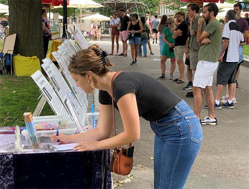 ![]() 图4:这位女士了解真相后,签名支持法轮功学员反迫害。 |