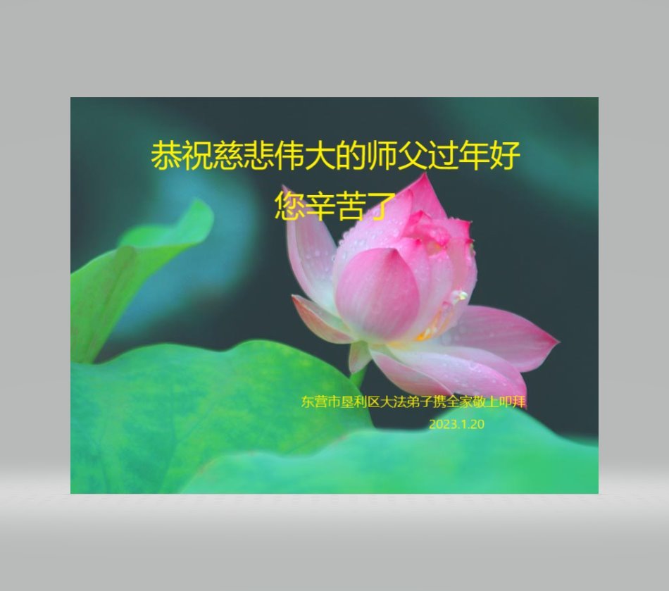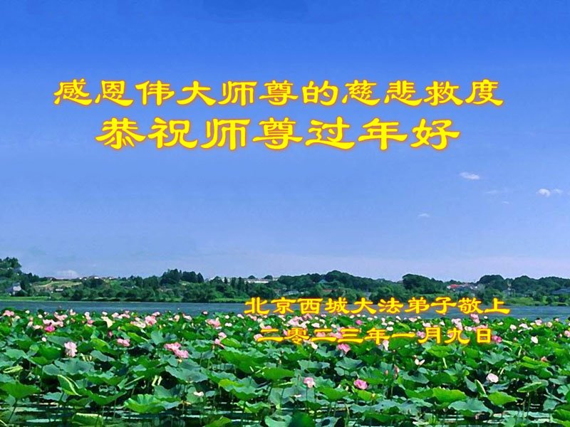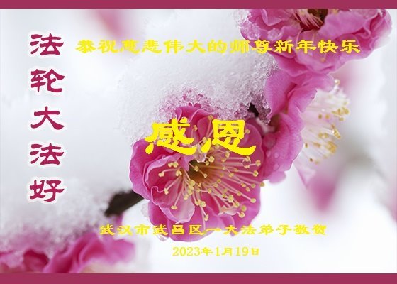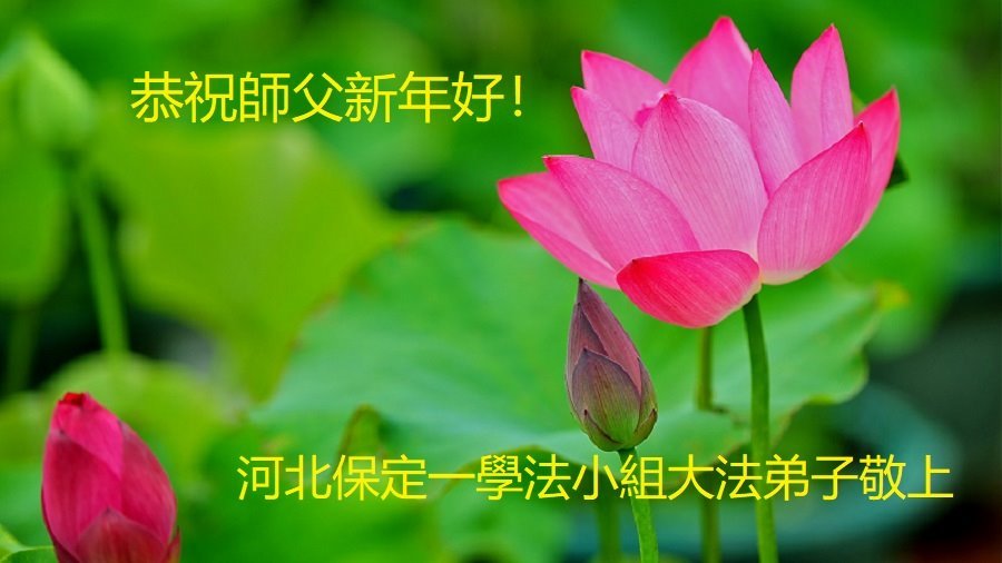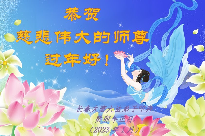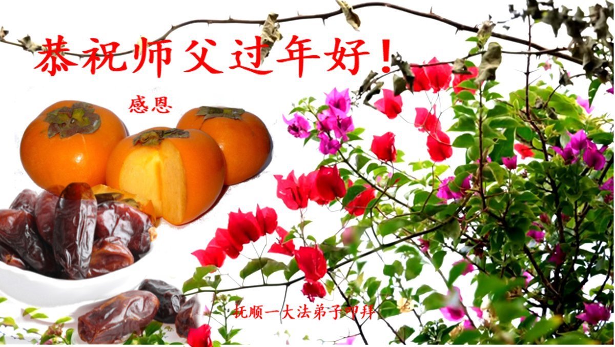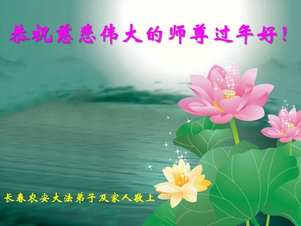 新年到来之际,我们夫妻俩老年大法弟子恭祝师父新年快乐!师父啊!弟子们想念您!助师救人是弟子们的使命不敢忘,待红魔除尽,解体恶党,法正人间迎师回中原!春回大陆师徒大团圆!
