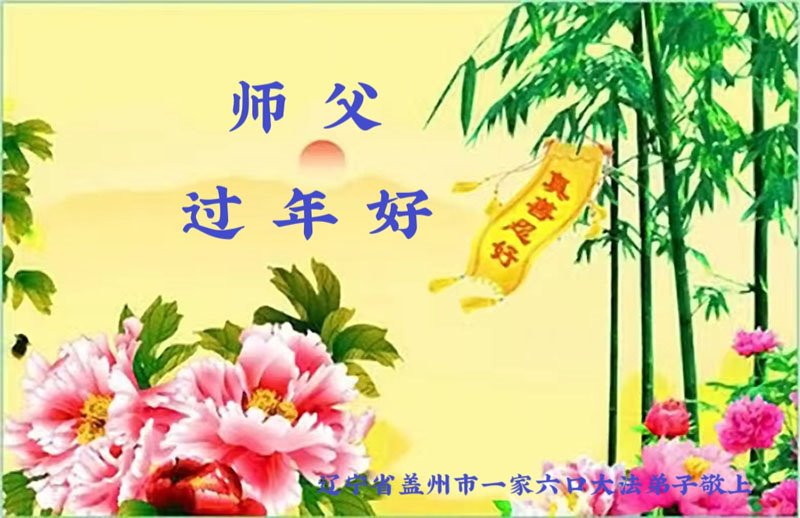 我是一九九六年得法修炼的老大法弟子,今年九十岁了,在二十多年跌跌撞撞的修炼中,虽很辛苦也很幸福,家人也见证了我一些遇难呈祥的神奇美好,都支持我修炼,四世同堂,母慈子孝,也使全家受益得福报。借此代表全家人恭祝师尊过年好!师尊辛苦了!谢谢师尊!