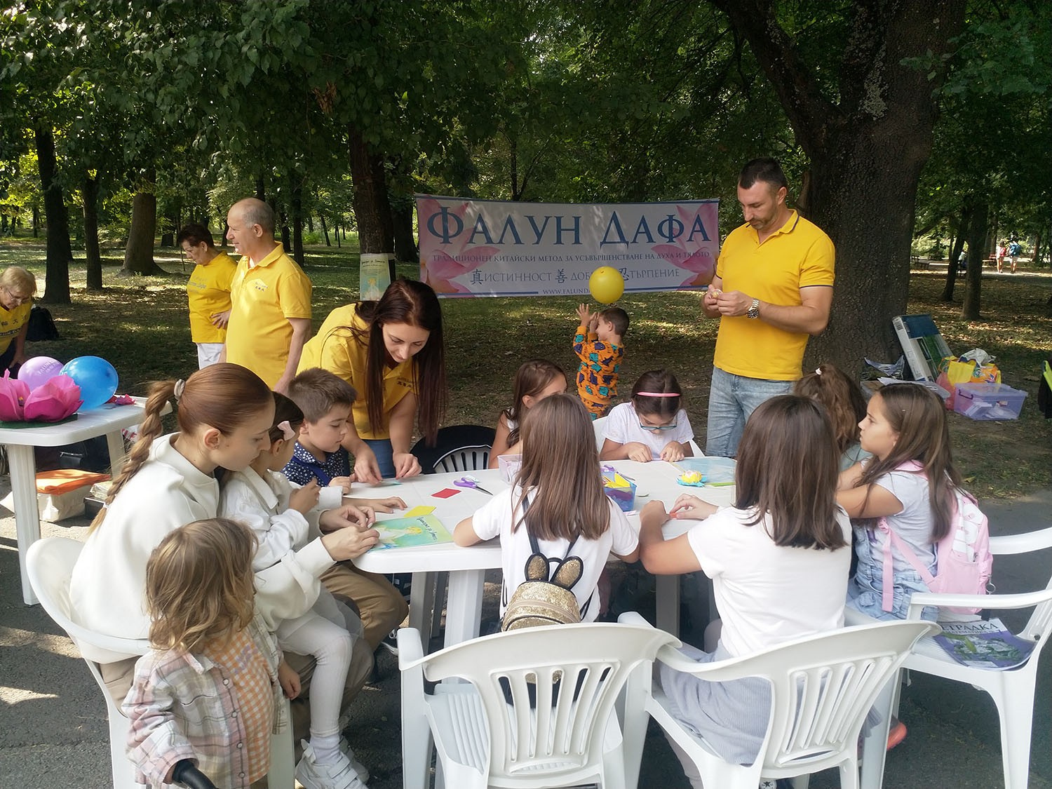 ![]() 图10:法轮功学员们在中央公园,以教做折莲花手工的方式,向世人传福音、展现大法和真、善、忍的美好。 |