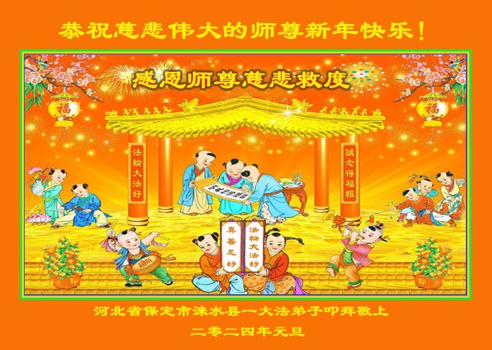 2024年元旦即将到来,弟子们怀着无比感恩的心,恭祝师父新年快乐!在新的一年里,弟子们要更加努力做好三件事,在做好上下功夫。学好法、发好正念、讲好真相,多救人。向内找,修心性,不断的锤炼、修正自己。走好走正修炼的路,兑现誓约,以报师恩!
