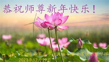 新年即将到来之际,辽宁省鞍山市一资料点全体大法弟子恭祝师父新年好!弟子们感恩师尊慈悲救度,保护弟子们平安走过纷乱不安的二零二三年。师尊为弟子们、为众生的巨大付出与承受,弟子用尽语言也无法表达对师尊浩荡洪恩的感激!唯有精進、听师尊的话、做好三件事,踏踏实实的修炼,坚修法轮大法到底,完成自己的神圣使命,圆满随师还!