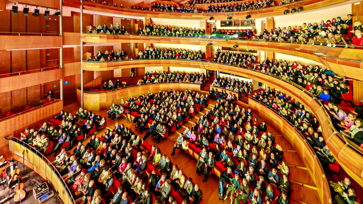 ![]() 图2:二零二三年四月十四日晚,神韵巡回艺术团今年在英国伦敦(Eventim Apollo)剧院的首场演出,票房售罄。(大纪元) |