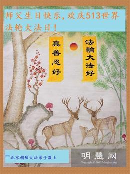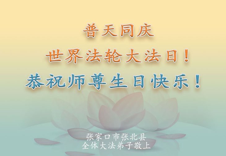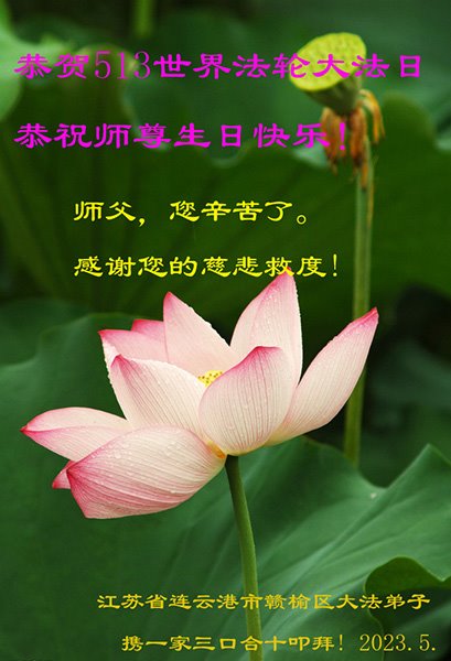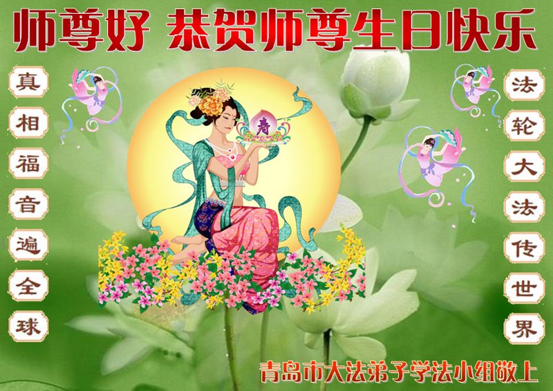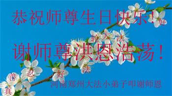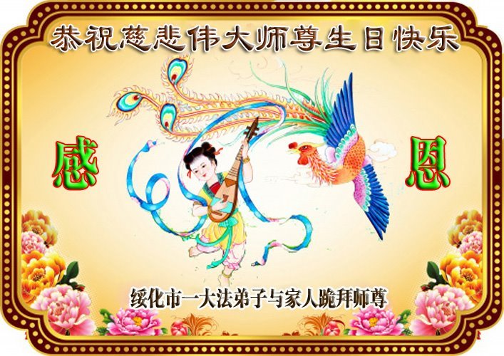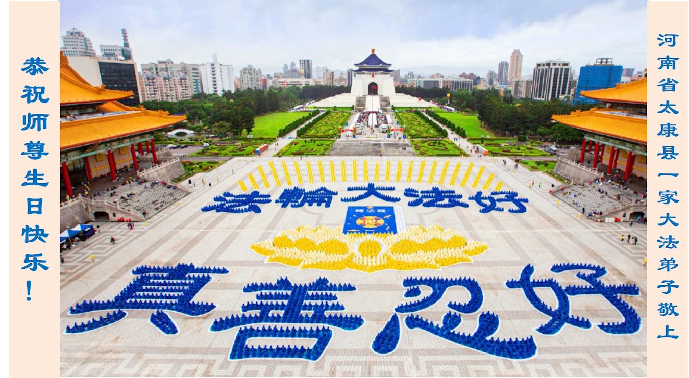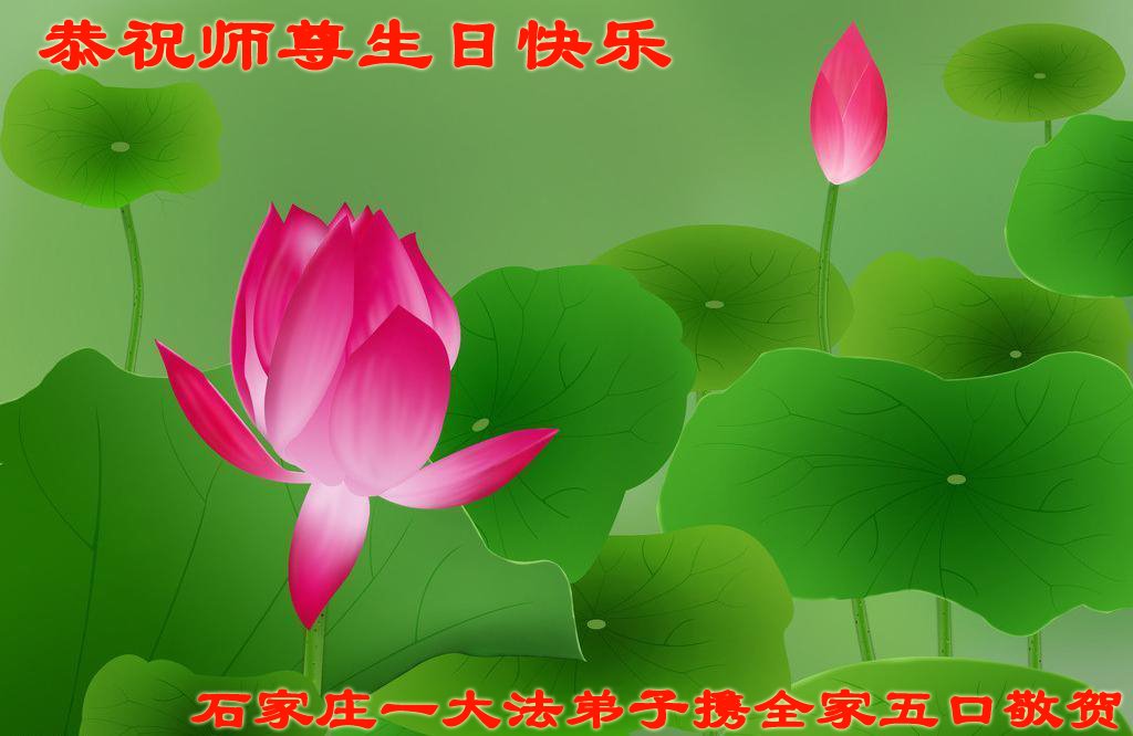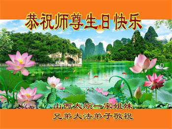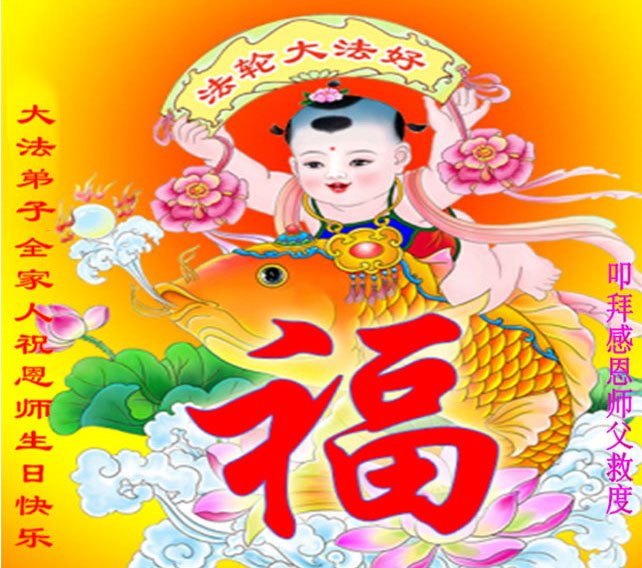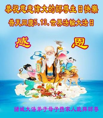 感谢李大师一直在看护着我们全家及所有的世人!使我们全家平安的度过了这乱世的年头。在此我作为一名大法弟子家属衷心的恭祝李大师生日快乐!