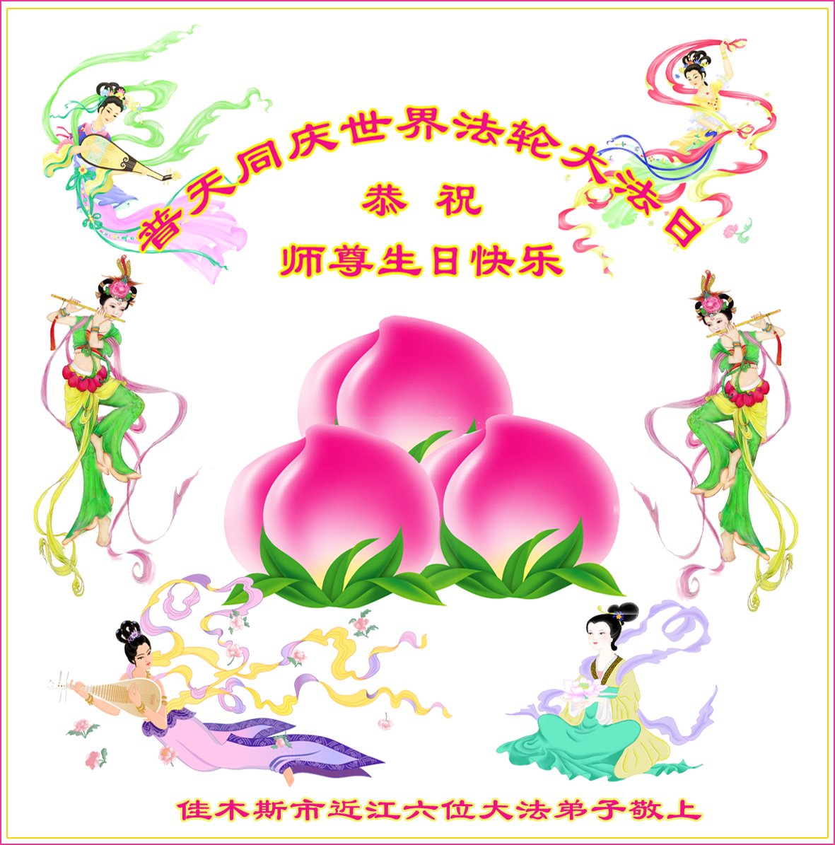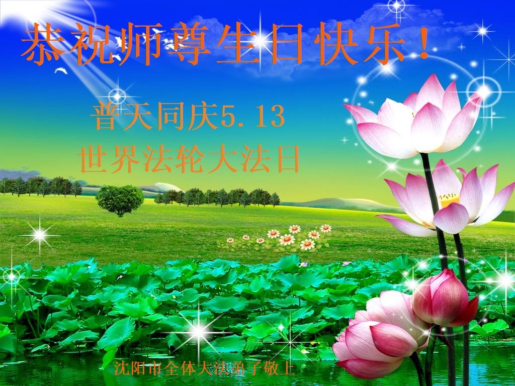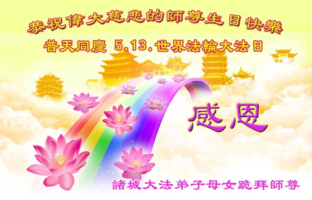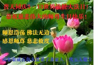 共同祝愿法轮大法永远洪传世界!恭祝慈悲伟大的李洪志大师生日快乐!