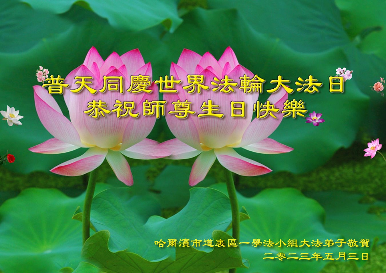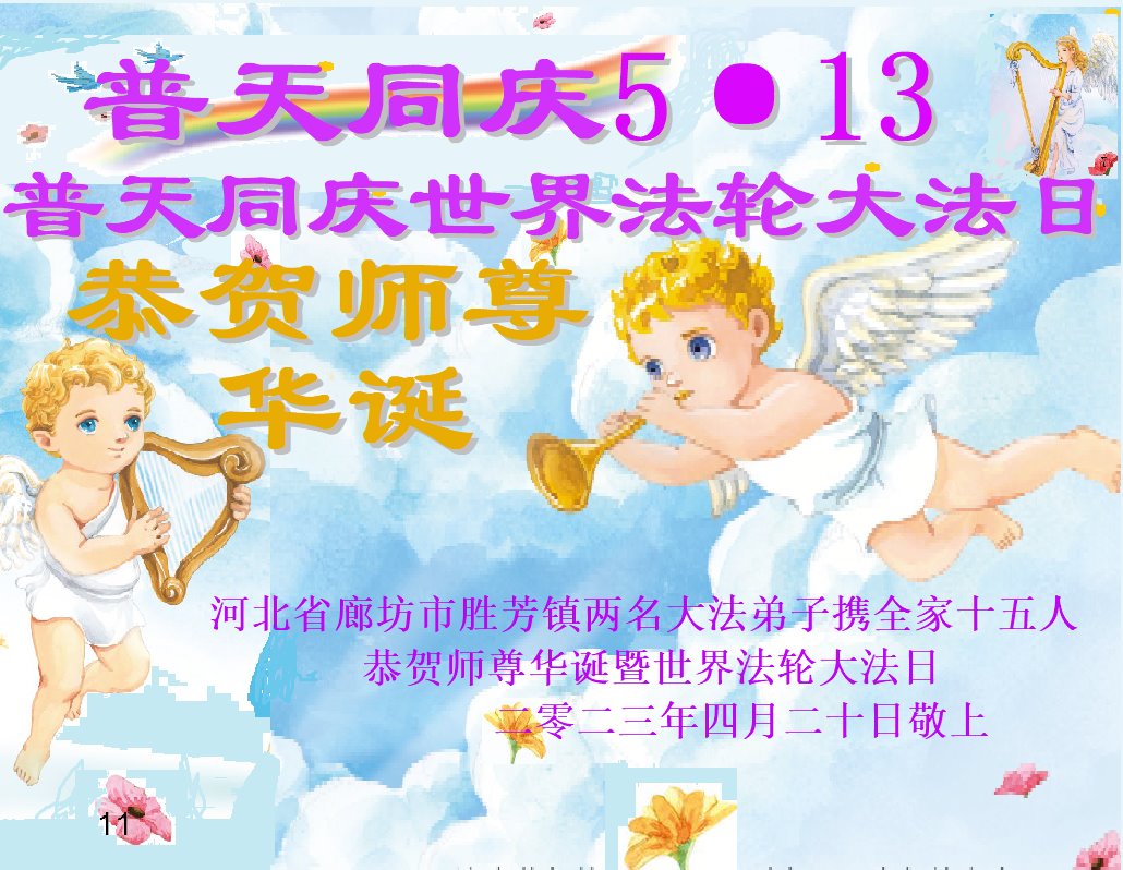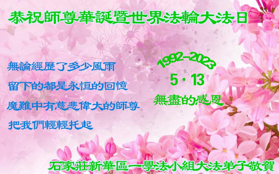 <英文版: https://en.minghui.org/html/articles/2023/5/12/208703.html>中国公检法司、军队大法弟子恭贺师尊华诞