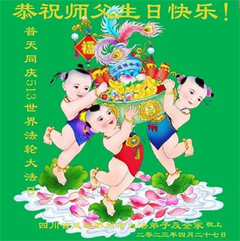 四川省大法弟子家人恭祝慈悲伟大的李大师生日快乐!