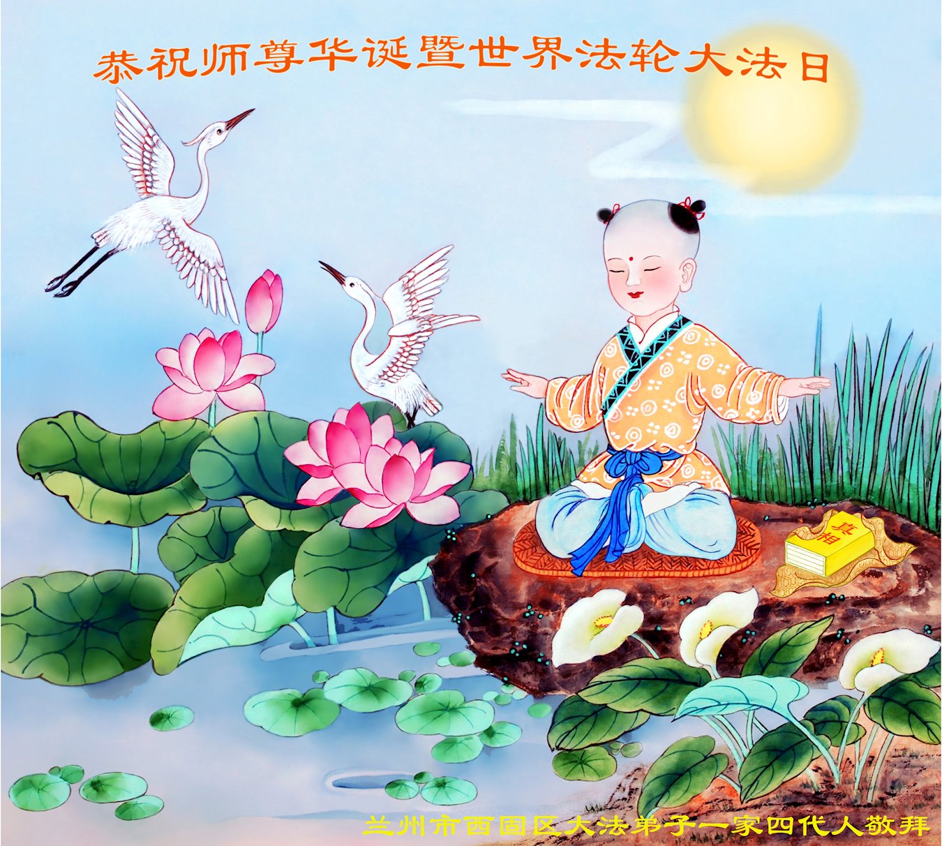 在此,敬贺法轮大法日!恭祝慈悲伟大的师父生日快乐!