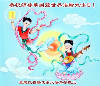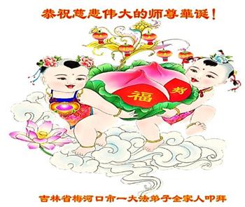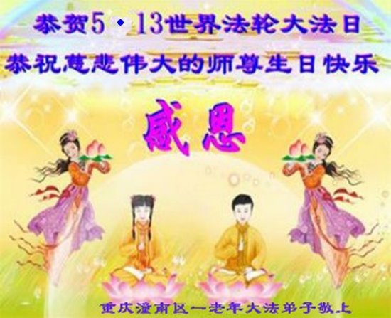 在普天同庆世界法轮大法日的殊胜日子里,我们俩老年大法弟子真诚的问声:师尊好!恭祝师尊生日快乐!感恩师尊慈悲救度!