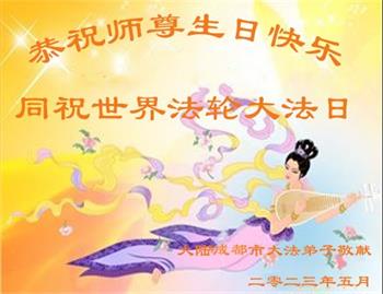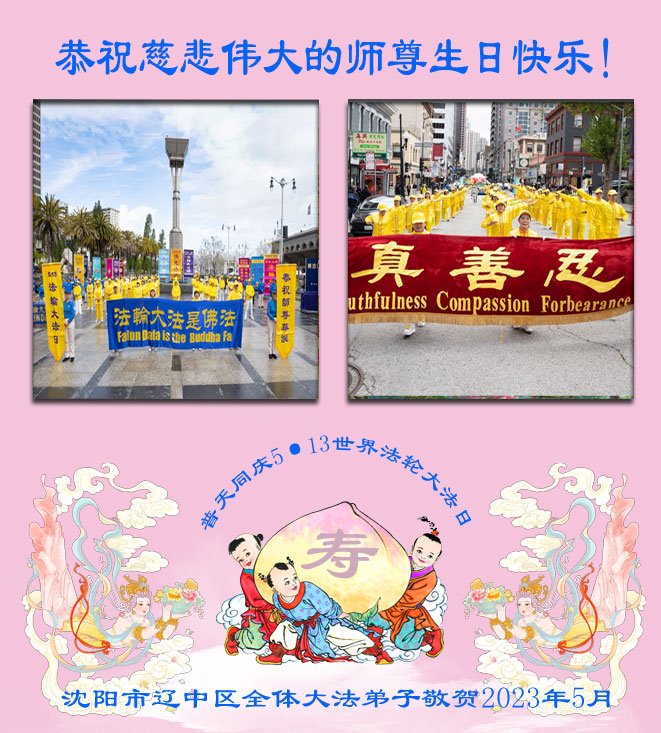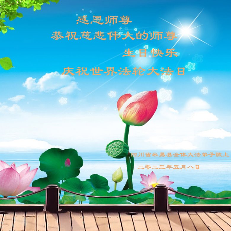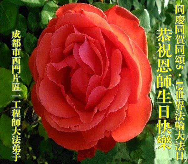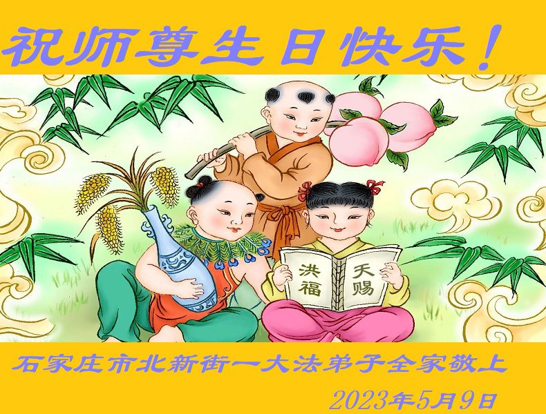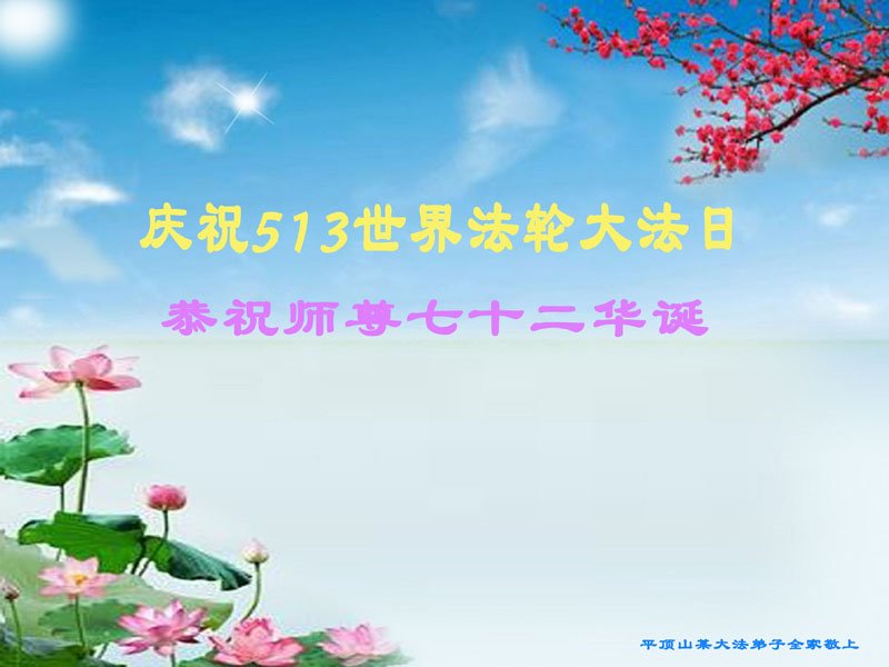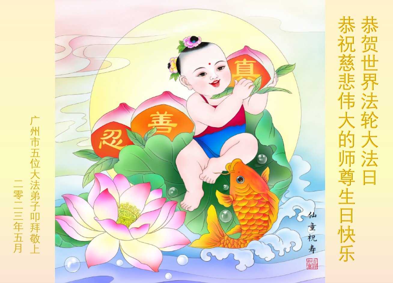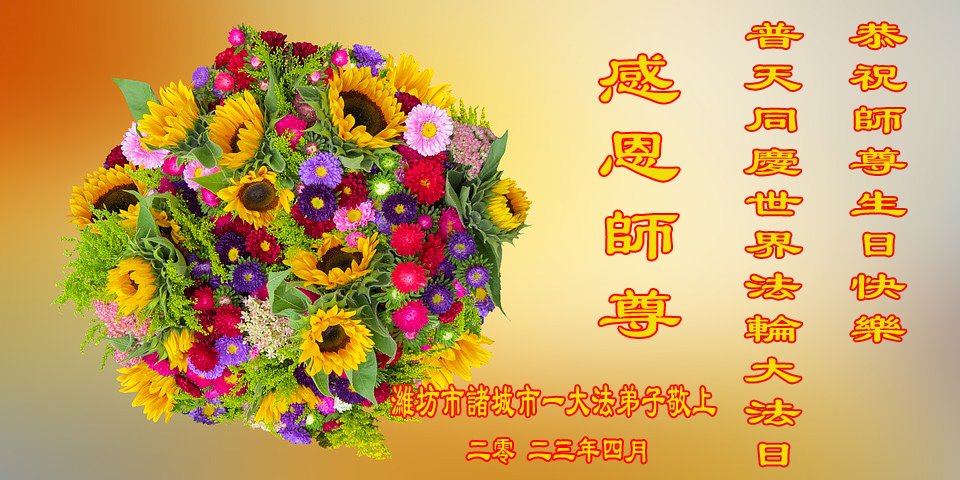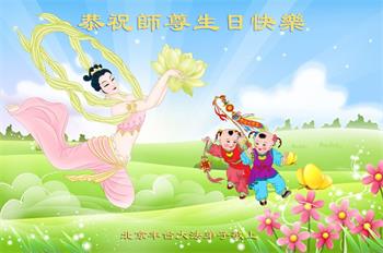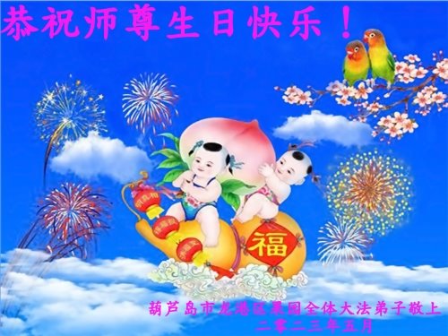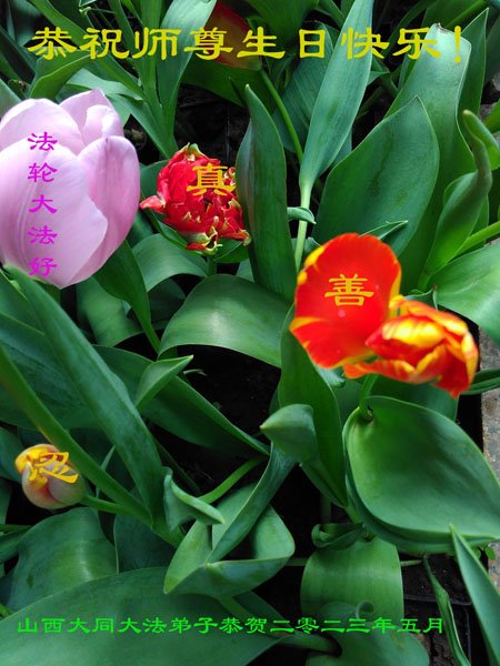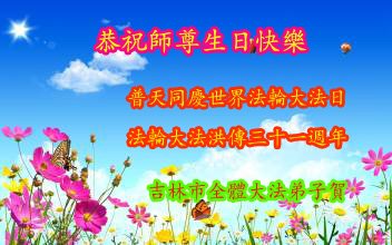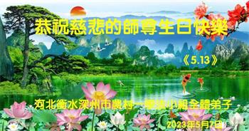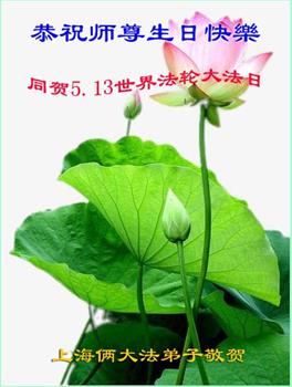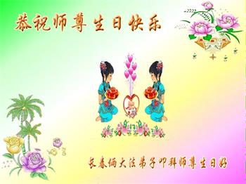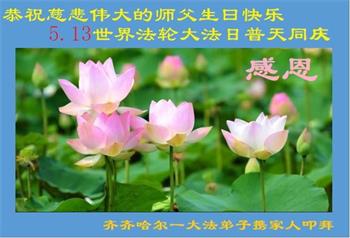 在我们恭祝师父生日和欢庆世界法轮大法日的喜庆时刻,我们心里充满了对师父的无限感恩!慈悲伟大的师父好!恭祝师父生日快乐!
