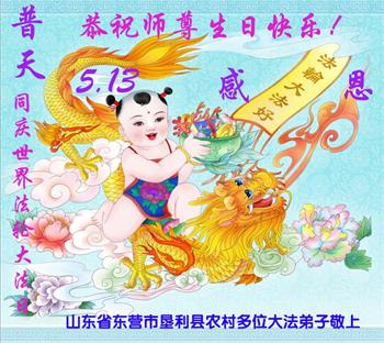 山东招远齐山镇一对夫妻大法弟子携全家八口人敬上