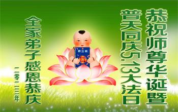 河北承德地区一青年大法弟子携家人,感谢师尊慈悲救度,恭祝师尊华诞!愿师尊多一些欣慰,少一些操劳。