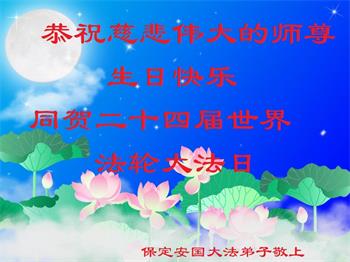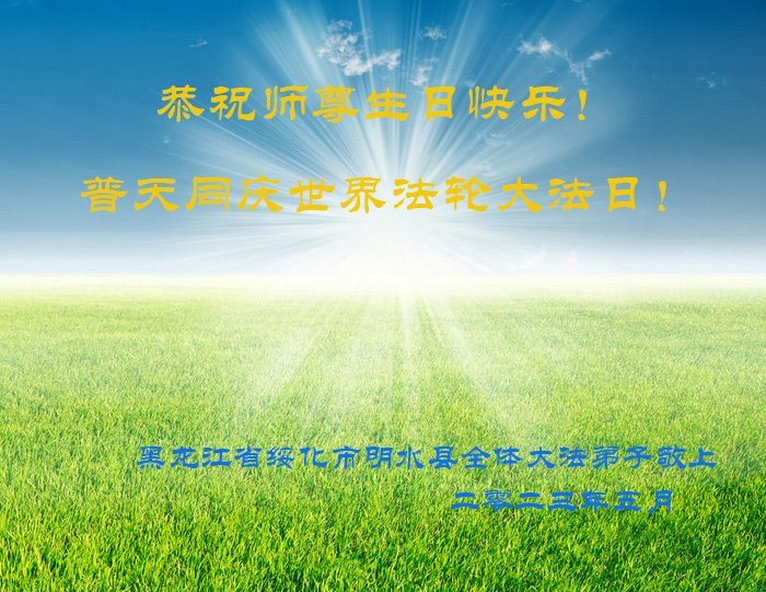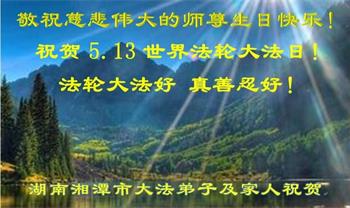 在世界法轮大法日到来之际,中国科技大学全体大法弟子敬贺师尊七十二岁华诞!庆贺法轮大法洪传三十一周年!感恩师尊的慈悲救度!感恩师尊为弟子们的一切付出承受,弟子们才能在大法中修炼、得度,生命才能得以提升,返本归真,重返家园。