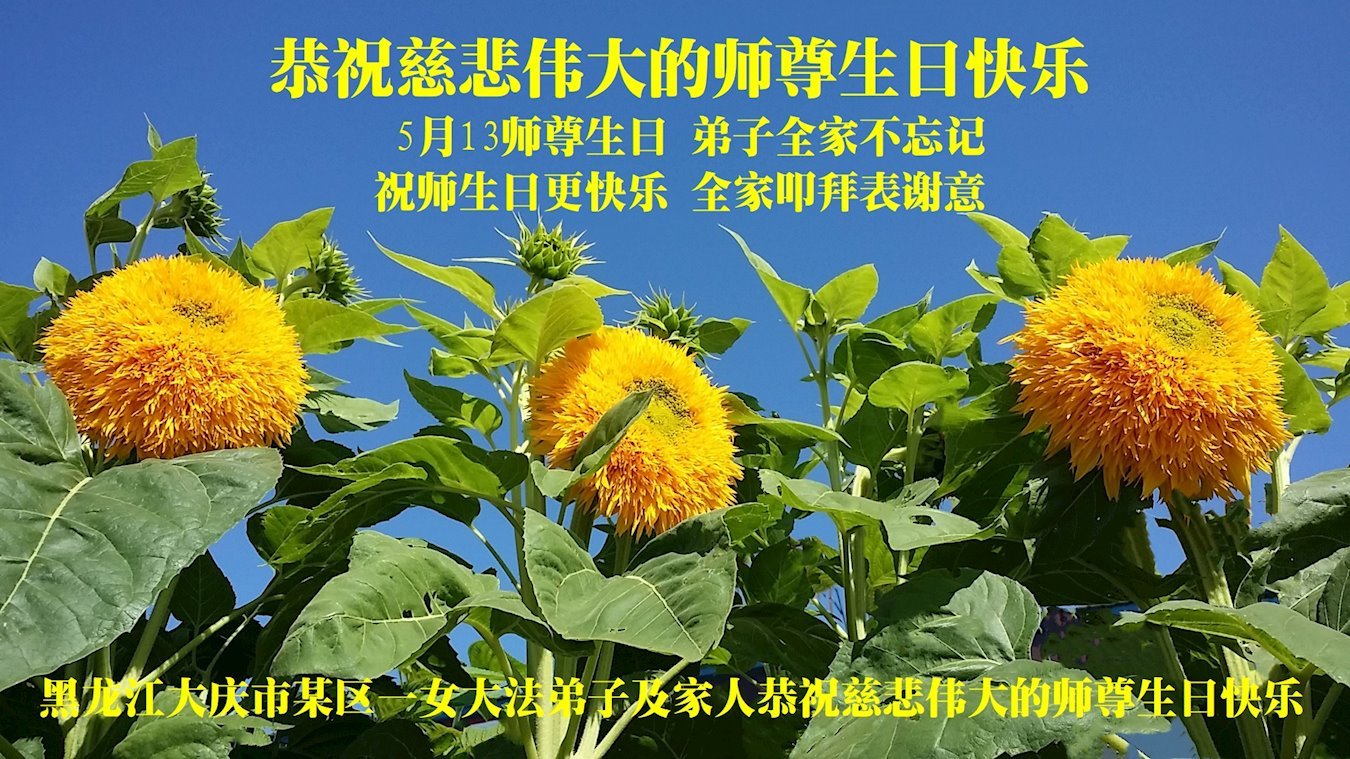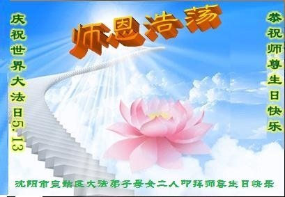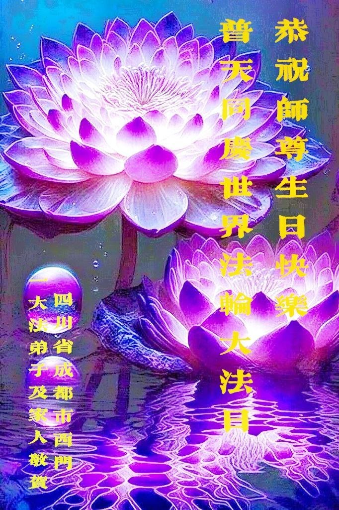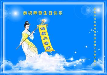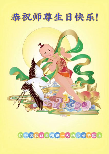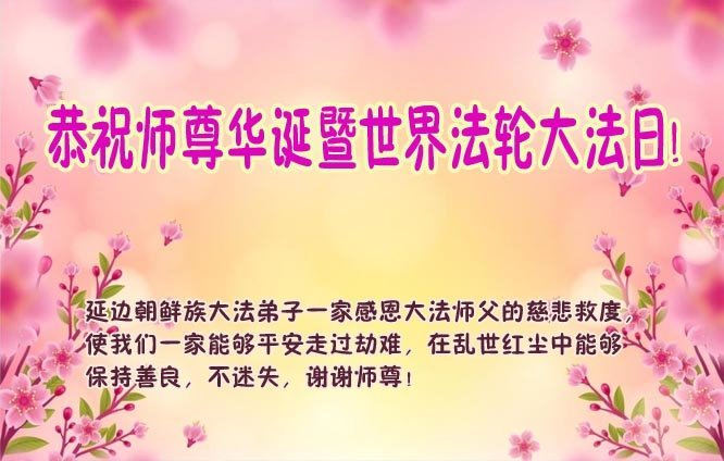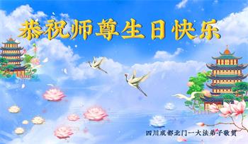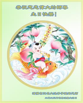 尊敬的师父好:我是昔日的小弟子,现在已成为一名青年弟子。是师父您在弟子千钧一发之际,使弟子躲过了一场车毁人亡的大劫。弟子感恩师父的救命之恩,弟子今后按照师父的大法标准去做,一定会成为一名合格的大法弟子。谢谢师父的保护与怜慈!祝愿师父生日快乐!