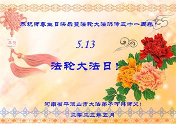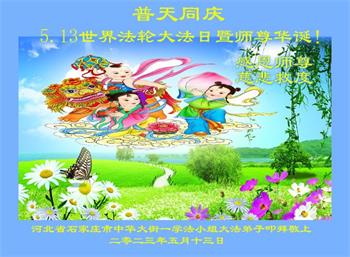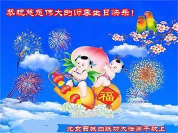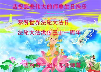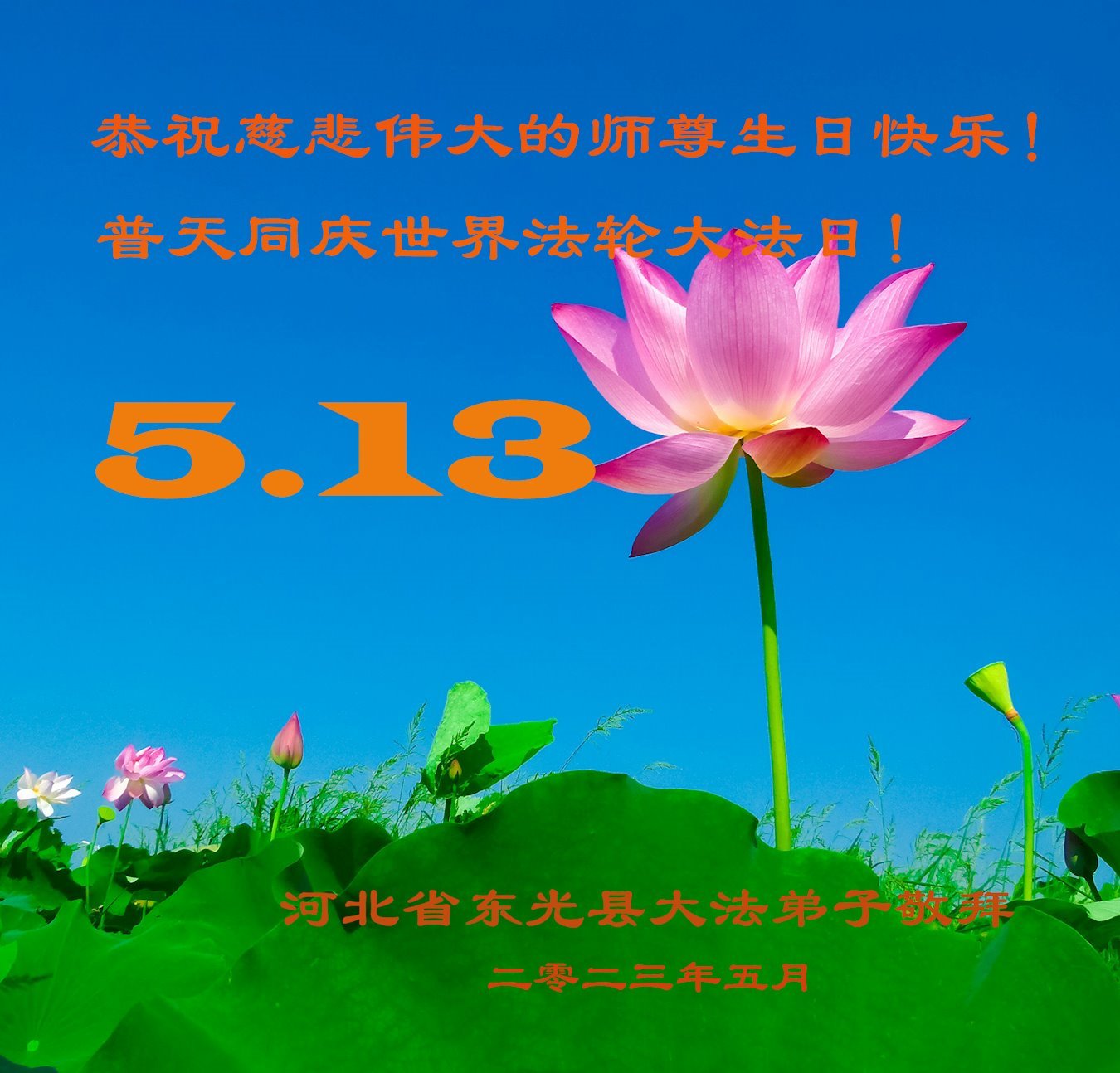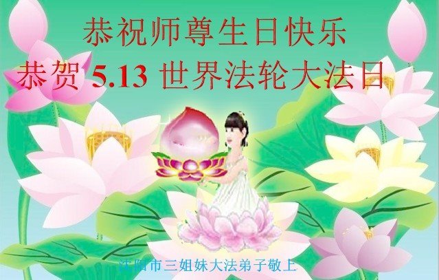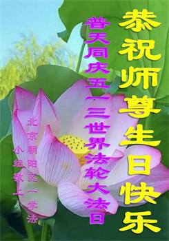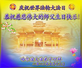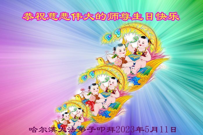 黑龙江省宾县所有明真相众生的肺腑之言与祝愿:五月十三日是普天同庆、隆重而欢庆的节日!不只是大法弟子的节日,也是普天众生的节日!我们怀着无比喜悦的心情,恭祝慈悲伟大的李大师生日快乐!法轮大法日生生不息、万古留传!真诚的问候李大师:您辛苦了!感谢您救度之恩!同时也感激您教的大法弟子!
