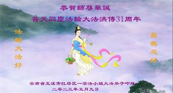 在世界法轮大法日来临之际,贵州毕节全体大法弟子恭祝慈悲伟大的师尊华诞!恭贺五一三世界法轮大法日!