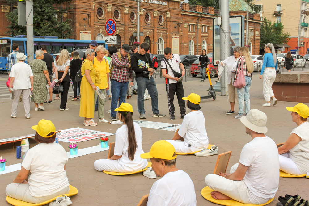 ![]() 图3:七月二十日,法轮功学员聚集在伊尔库茨克的主要大道上举办纪念反迫害二十四周年活动,传播法轮功的真相,吸引许多路人驻足了解。 |