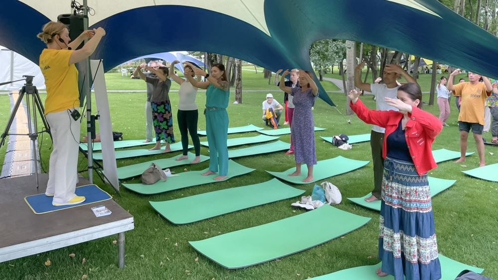 艾琳娜(Elena)是一名瑜伽爱好者,今年七月二日她在莫斯科国际瑜伽日上首次听说法轮功。这次与学员们在印度节上再次邂逅,艾琳娜非常开心,她和学员们一起炼功,并表示很高兴能够在炼功过程中“找到和谐”和“积极的情感”。