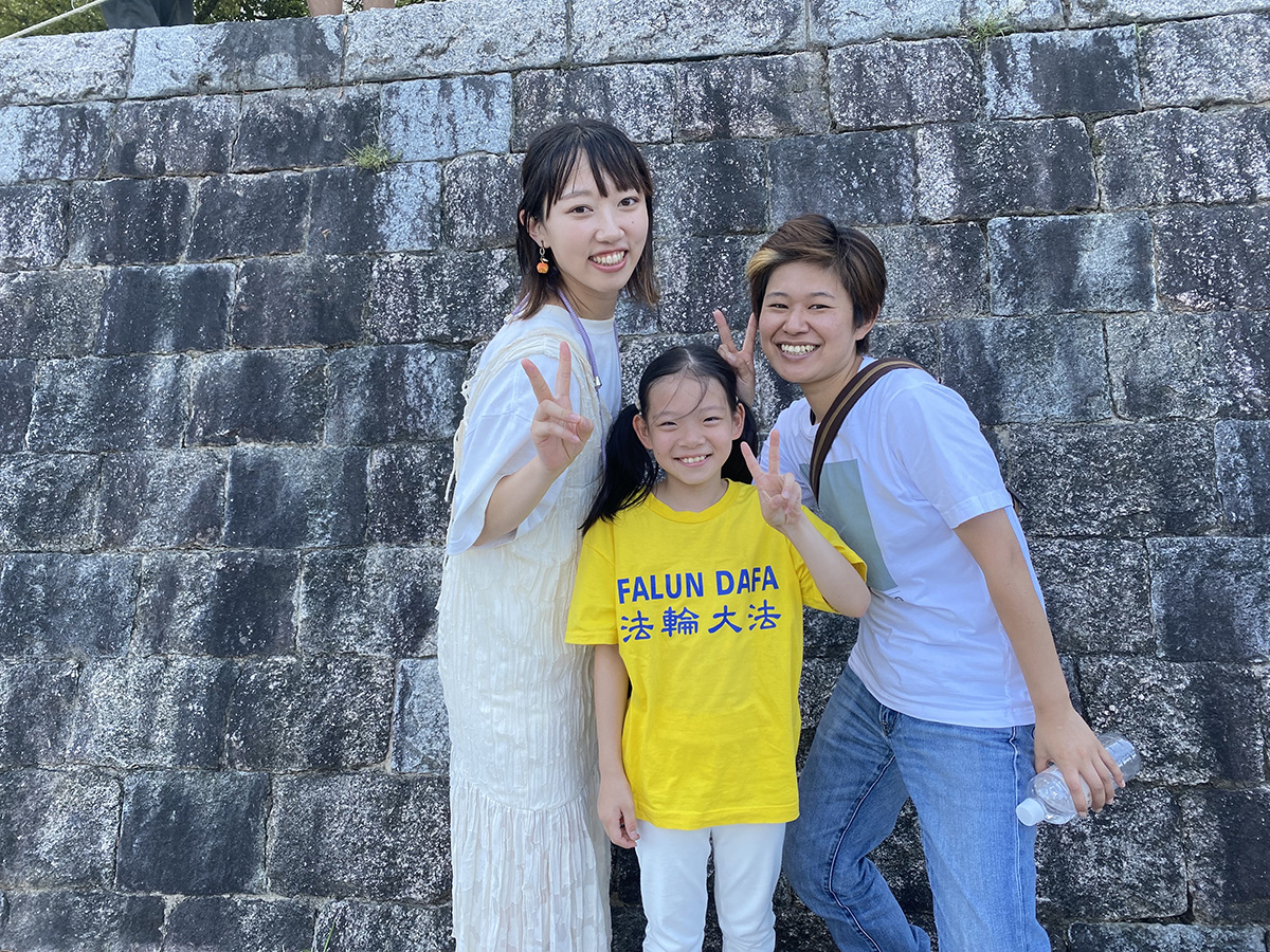 还有一位艺名叫做“会社员蜜橘”的年轻歌手,一直模仿着炼功。她告诉法轮功学员说:“今天的表演很棒!而且,在学炼功法时觉得特别舒服。”