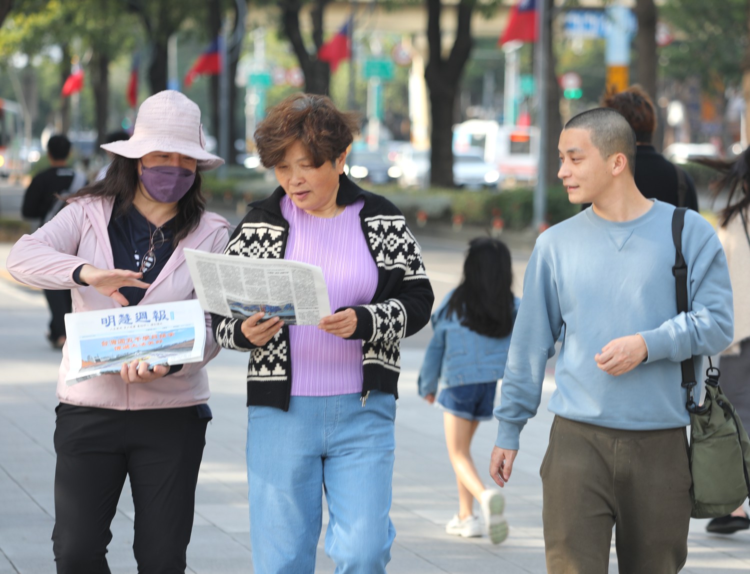 ![]() 图5~6:法轮功学员向过往民众发送真相资料,分享修炼的美好。 |