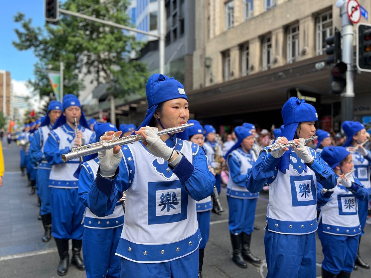 当天游行队伍超过两百支,绵延一点六公里。由法轮功学员组成的天国乐团一出场,街道两边各族裔人民的欢呼声、喝彩声和掌声络绎不绝,还有中国人在人群中大声喊:“看法轮功!”表情激动而自豪。