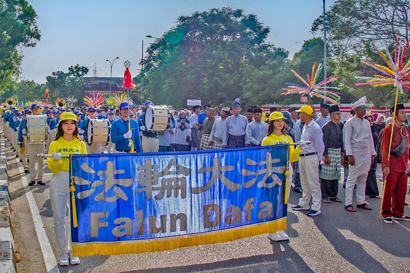 游行的起点在恩古·普特里广场(Engku Putri Square),参加的队伍身着民族服装,他们中有政府雇员、学生,以及来自当地社区和俱乐部等多个团体,法轮功学员的队伍由天国乐团打头阵,随后是仙女队、腰鼓队以及身穿黄色服装、手持气球的法轮功学员。