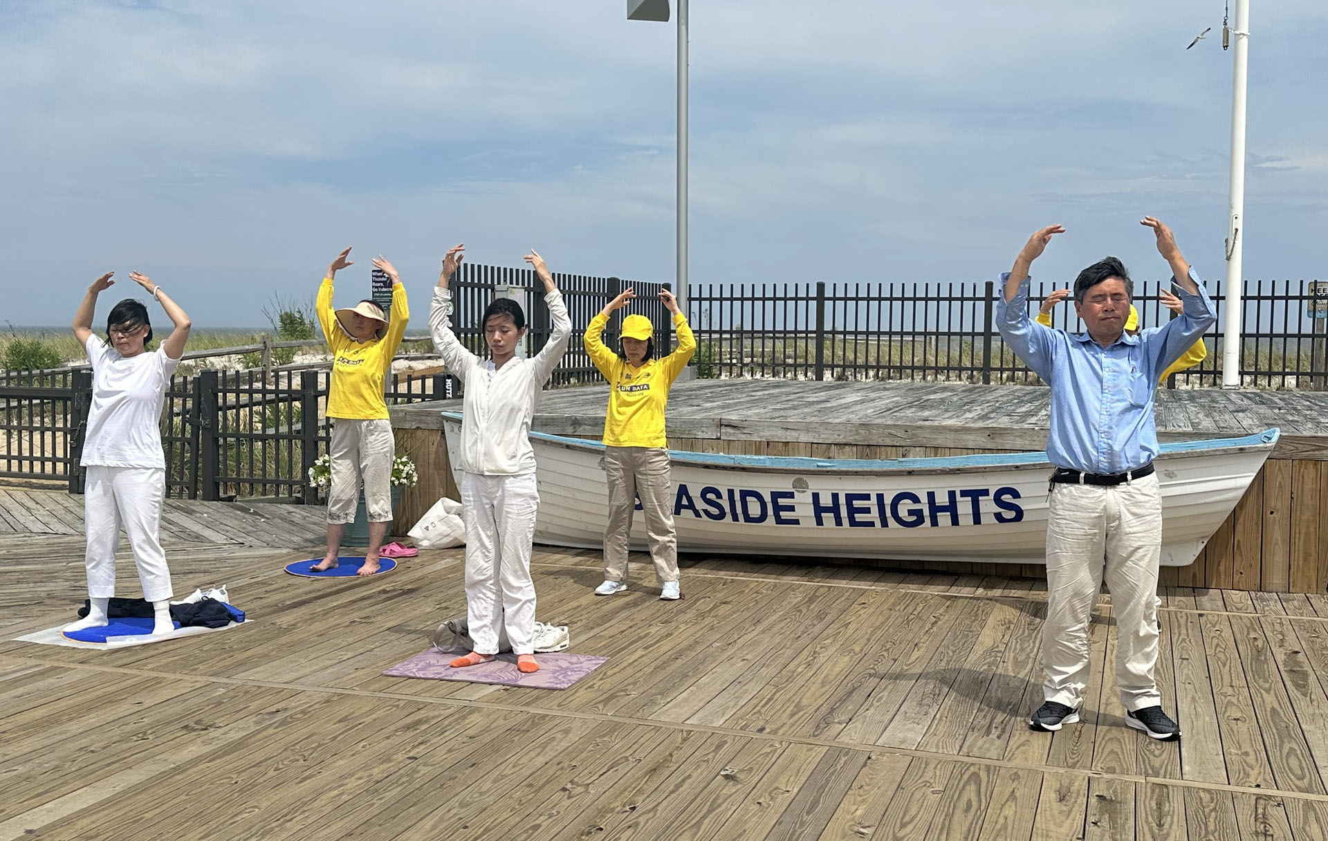 ![]() 图2~4:新泽西州法轮功学员在海滨高地镇木板路上展示功法。 |