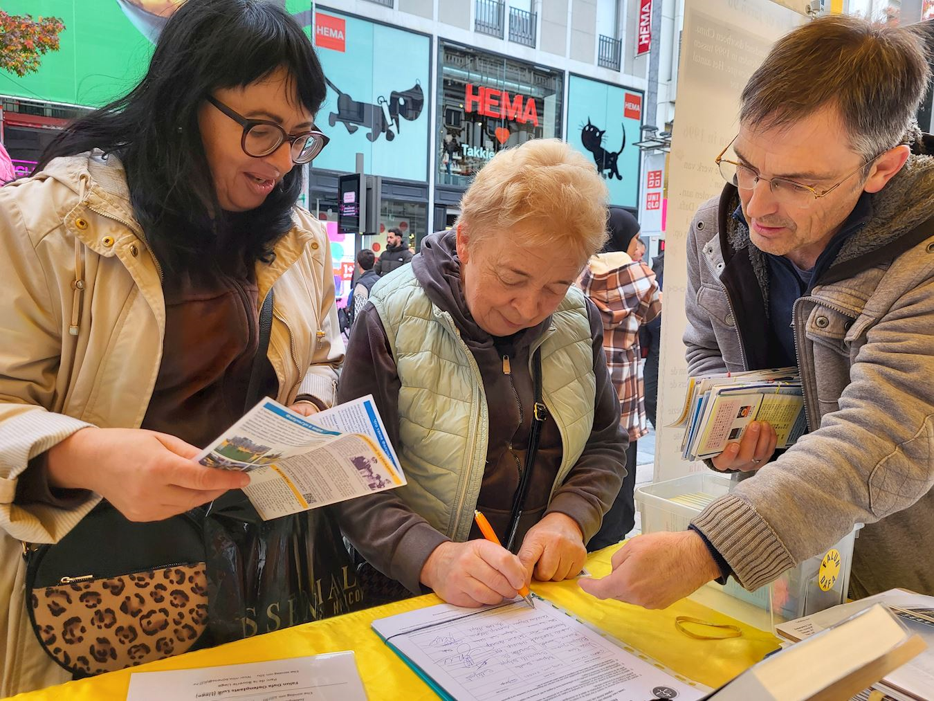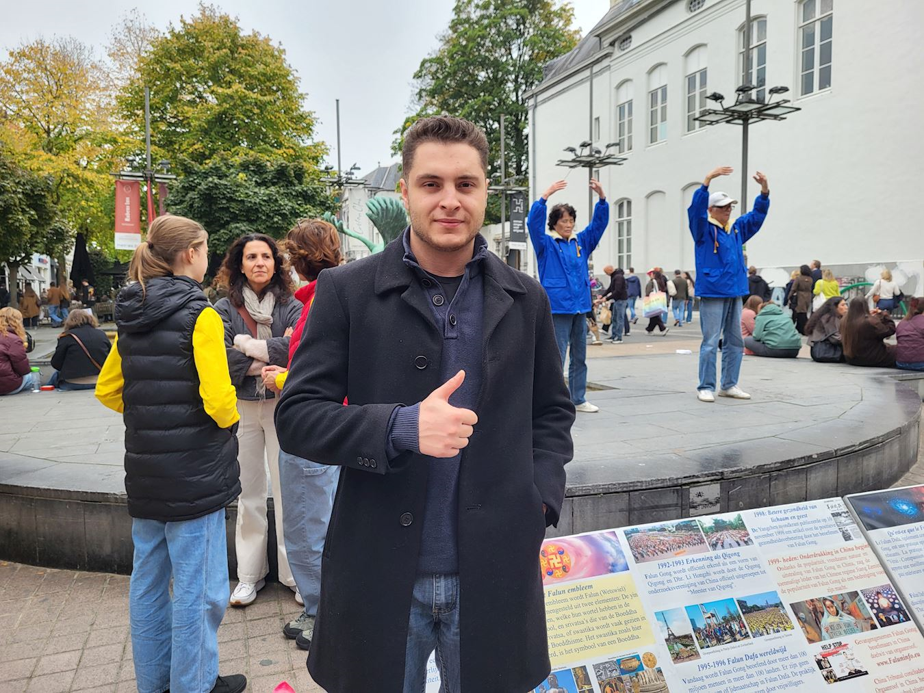 瓦雷(Warre)和埃姆斯克(Emske),两人就读于安特卫普的一所高等院校。他们与学员交谈了很久,他们说:“我们真的不知道发生了这样迫害的事。 ”瓦雷说,“这是我们第一次听说,感觉很震惊。尤其是这个群体人数庞大,据说迫害初期有七千万到一亿人,却几乎没有人提及,太不可思议了。 ”