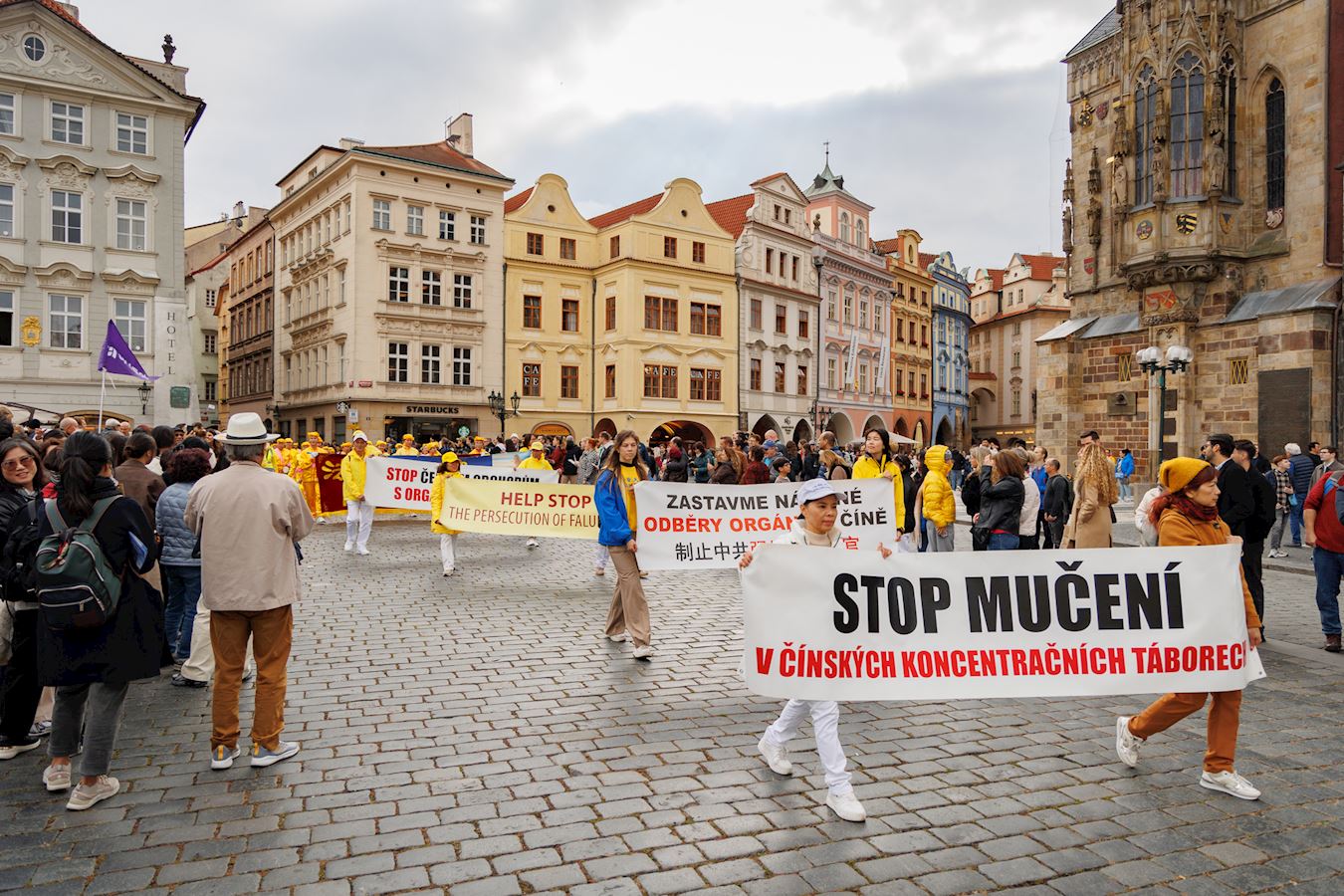 报道中说:“十月十一日,星期六,法轮功学员在布拉格举行了游行,提醒布拉格市民与游客关注(中共对该信仰团体的持续)迫害。世界上其它令人担忧的事件使得法轮功受迫害这个话题被淡化了,但是中共当局发动的这场迫害已持续了二十六年,杀害了成千上万中国人。”