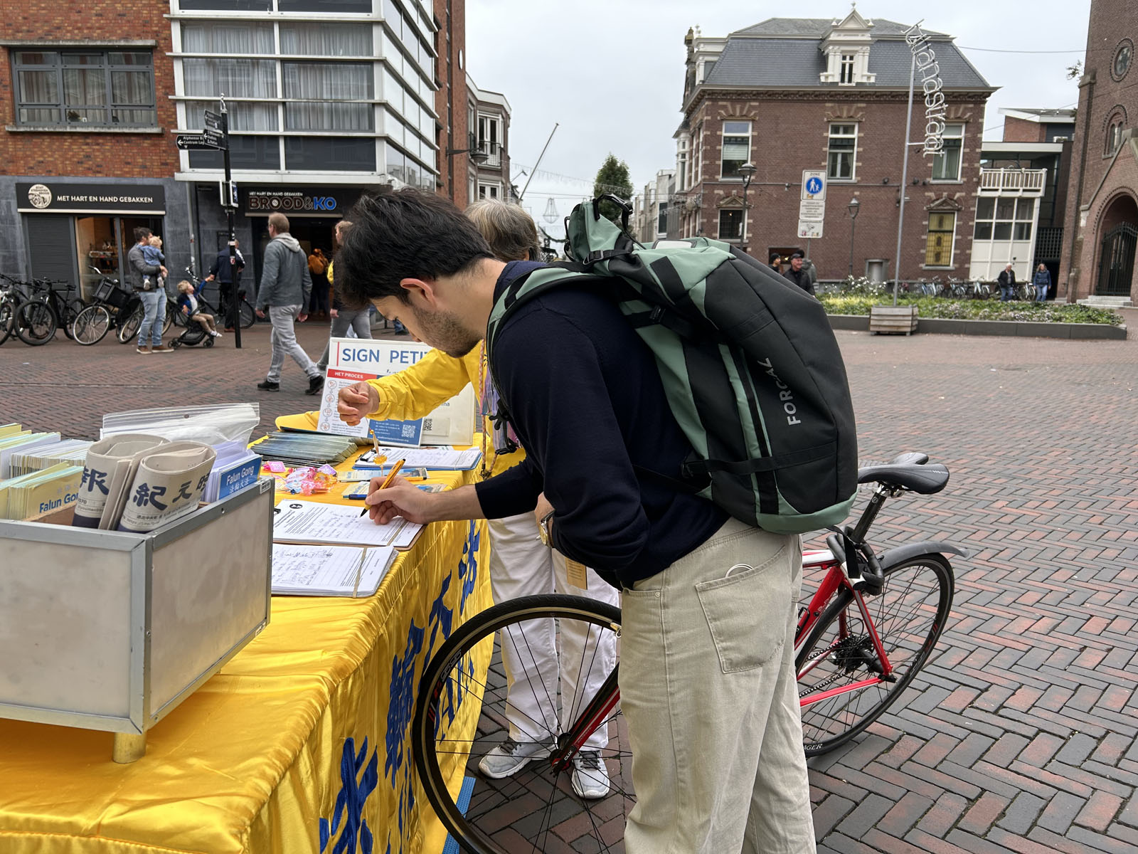 【明慧网二零二五年十月十八日】二零二五年十月十一日,荷兰巡回真相点来到荷兰南部市镇莱茵河畔阿尔芬(Alphen aan den rijn),向当地民众讲述法轮大法的美好,揭露中共对法轮大法的残酷迫害,受到民众的欢迎和支持。