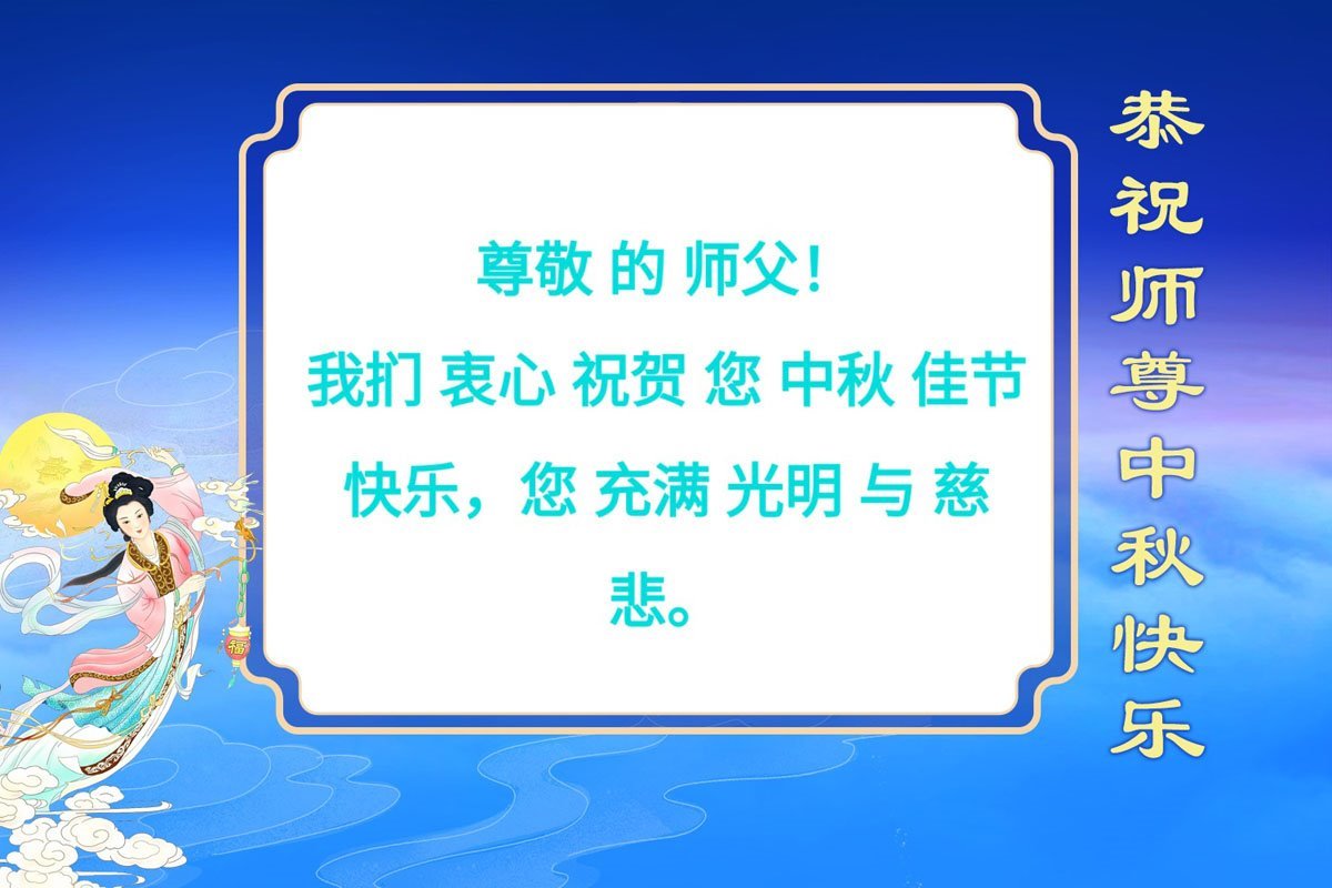 (尊敬的慈悲的师父:祝您中秋节快乐!您鼓励我精進修炼做三件事,在您的指导下,我的人生发生了翻天覆地的变化。我所做的一切都感受到您的守护和支持。感谢您的看护与祝愿。)