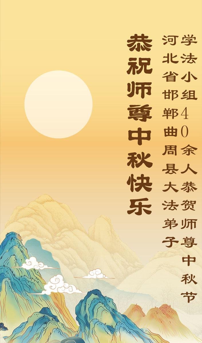 师尊辛苦了!我们全家八人恭祝师尊中秋节快乐!弟子在以后的日子里,会多学法,做好三件事,抓紧时间救人,兑现自己的史前誓约,圆满随师还。法轮大法好!真善忍好!