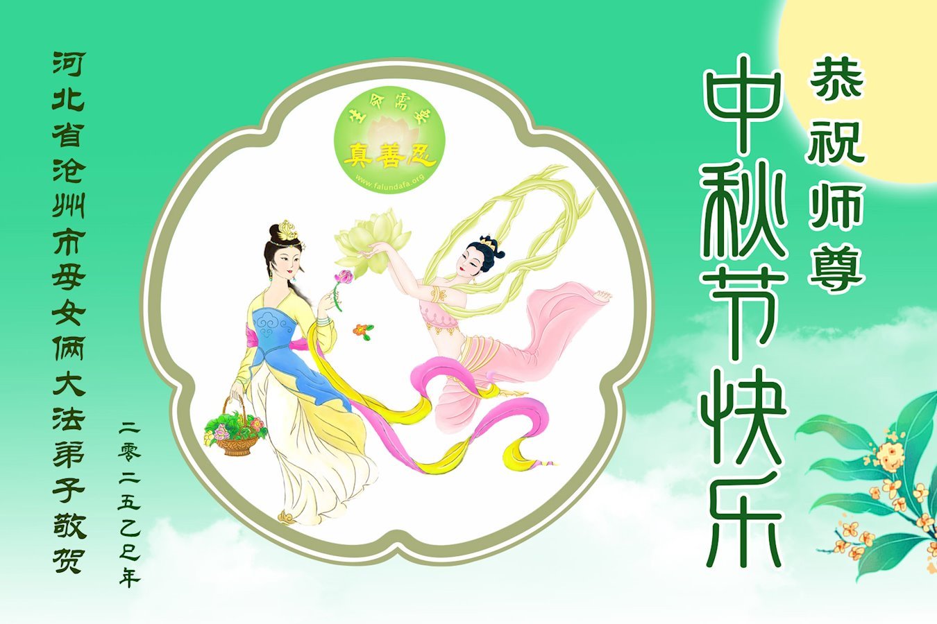 河北省沧州市母女俩大法弟子恭祝师父中秋快乐!